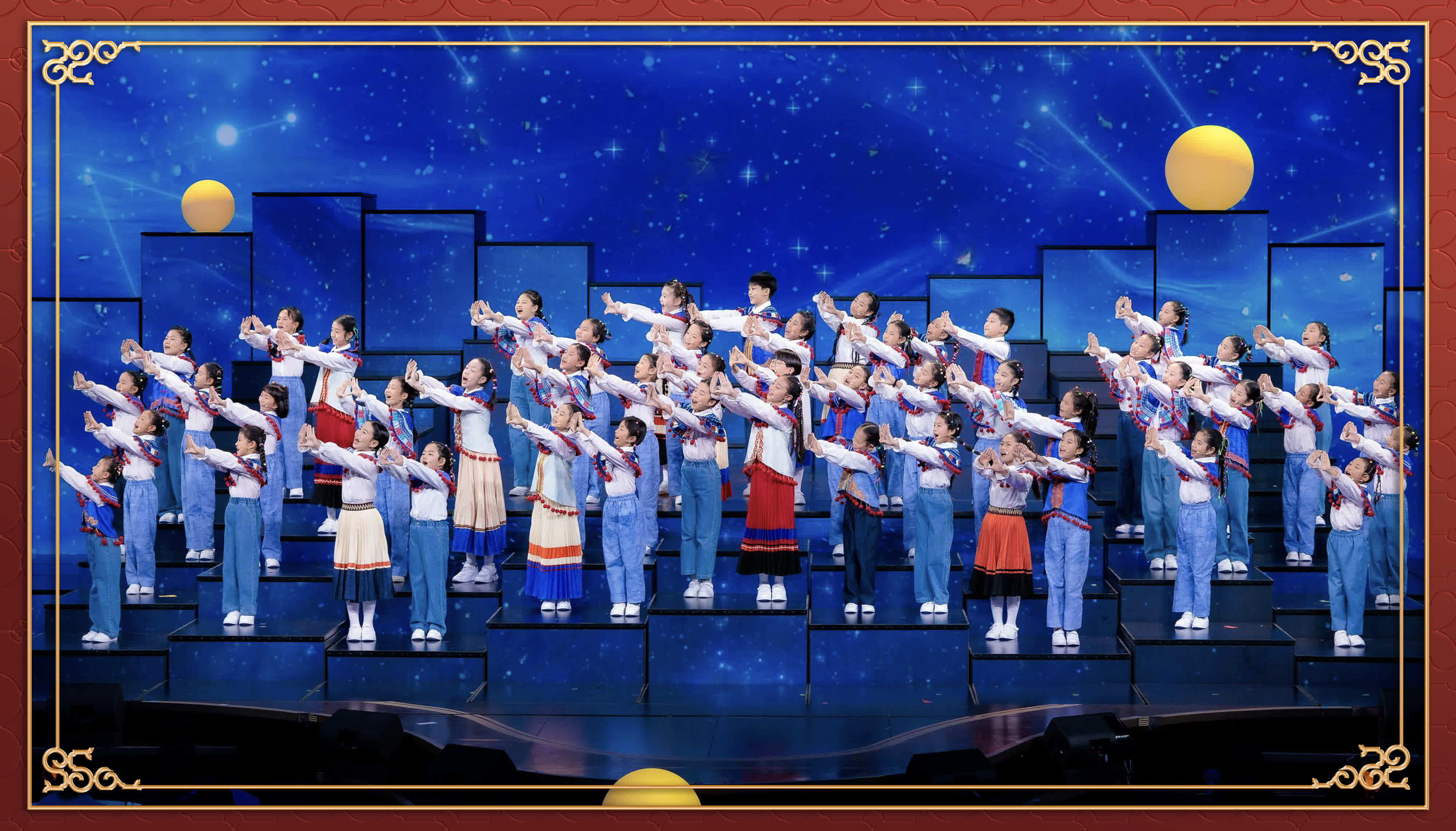 「如意」舞台上演心意滿滿的節目。以「紅包」為主題的歌舞節目,在歌詞、表演和服裝設計上融入剪紙、皮影、中國結、風車等非遺和春節民俗元素;來自四川大涼山的妞妞合唱團唱響天籟童聲,在虛擬現實等技術加持下,一方舞台幻化成廣闊宇宙空間,再現九天攬月千年夢成。