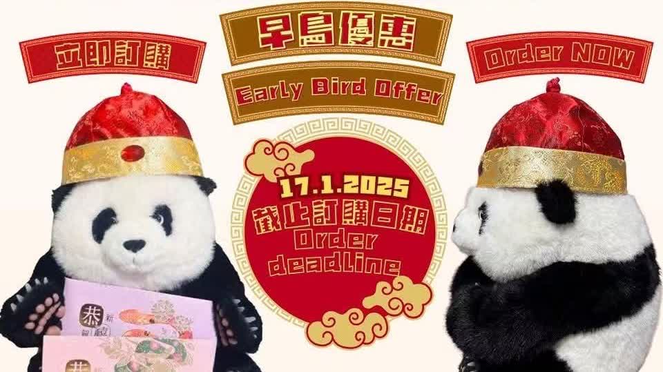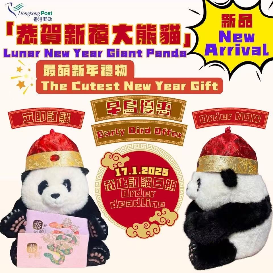 由即日起至1月17日,預訂「恭賀新禧大熊貓」連「歲次乙巳(蛇年)」利是封,即可享有新春早鳥優惠,快啲帶佢哋返屋企賀新禧啦!