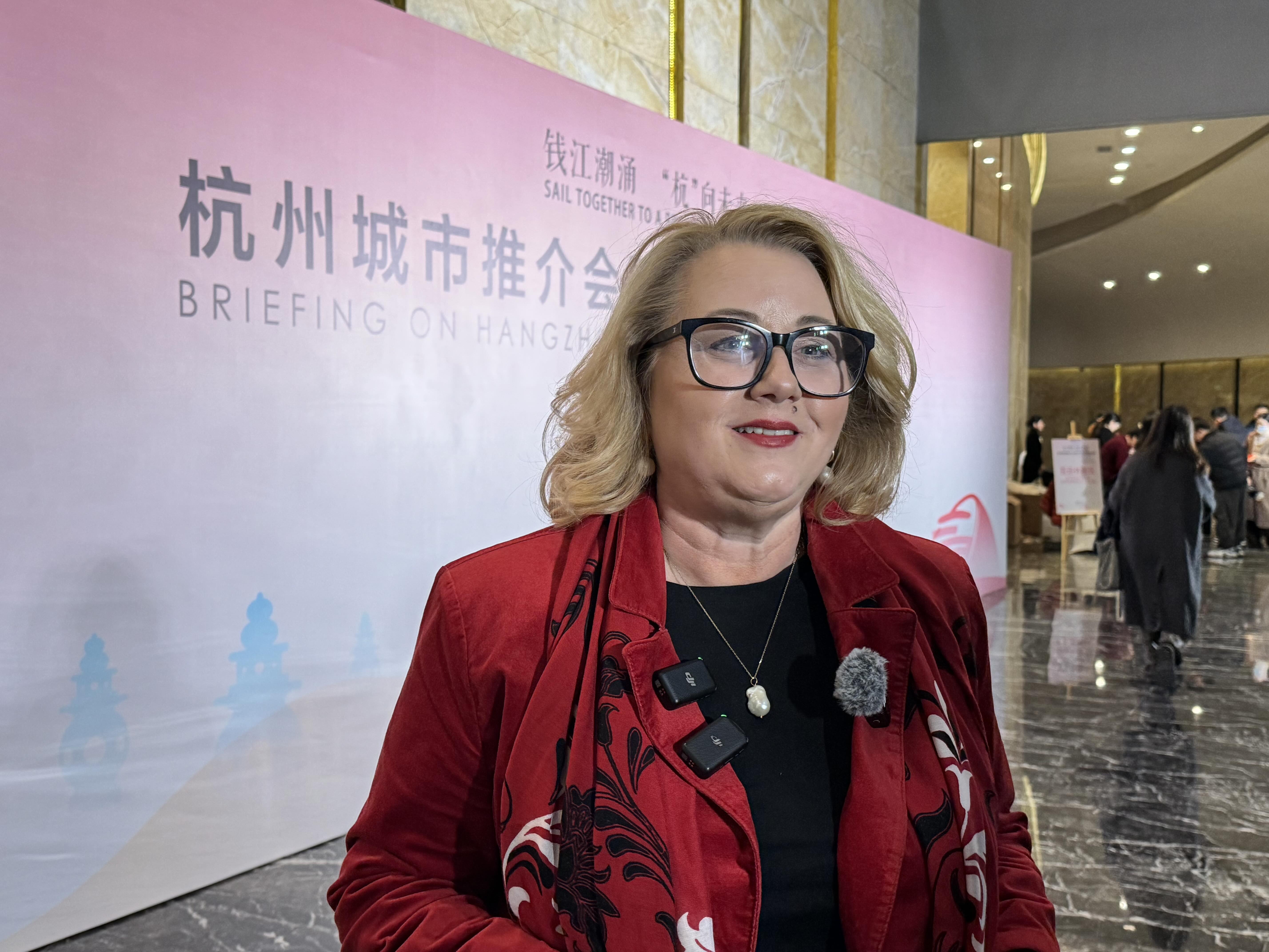 浙江杭州錢江貝賽思外籍人員子女學校校長Kyra Gailis在現場分享了自己對杭州的感受。「這座城市的神奇之處在於我們既可以在這裏享受平靜的生活,又可以藉助便捷的交通在短時間內探索周邊地區。」Kyra Gailis笑着說道,自己已在杭州居住五年,每年四月她都會與丈夫前往茶園採摘茶葉,「我們非常喜歡喝綠茶,希望未來能在此了解更多茶文化。」