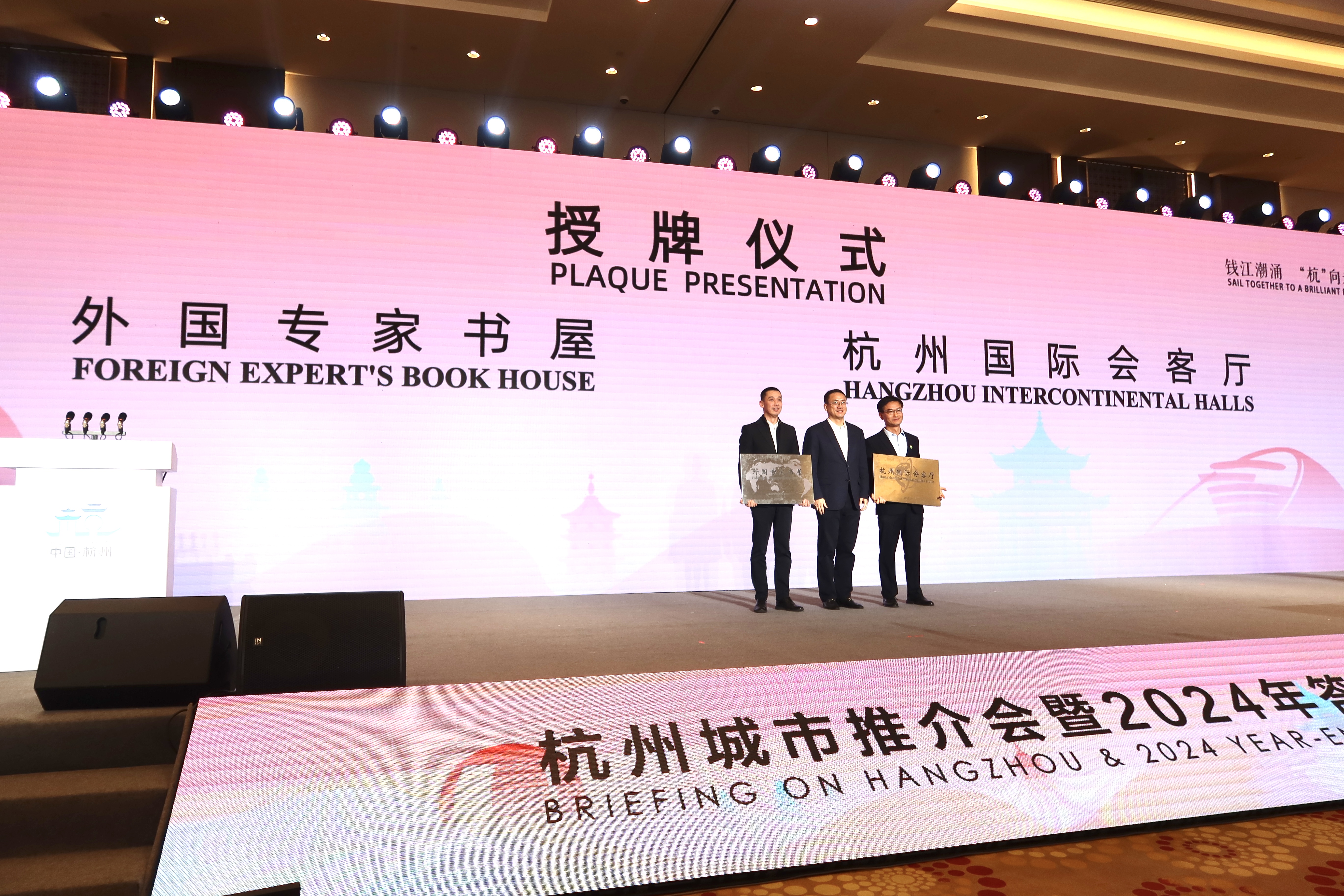 當天,活動舉辦地——杭州國際會議中心(以下簡稱「國會中心」)被賦予兩塊新牌匾,分別是「杭州國際會客廳」 和「外國專家書屋」。國會中心帶着全新的「身份」和定位,向着打造城市國際會客廳、高能級開放強市的展示窗口邁出了堅實一步。