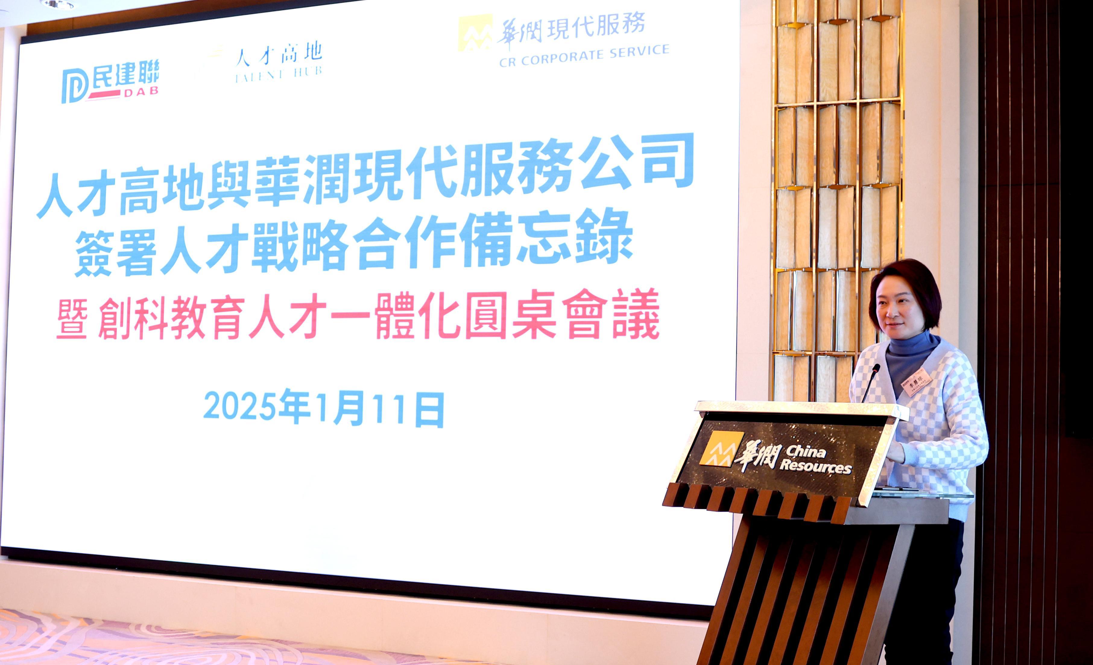 華潤集團副總經理藍屹表示,華潤集團歷來重視人才工作並積極支持香港人才發展。「十四五」期間,華潤集團結合香港專業服務業高度發達的優勢與特點成立華潤現代服務有限公司,作為華潤集團重點培育發展現代服務業的新興業務單元。華潤現代服務去年啟動了「潤才·匯智」香港專業人才發展項目,為香港高端專業人才搭建培訓和交流平台。他強調,華潤現代服務將與香港民建聯深化合作,共同打造雙贏、可持續發展的戰略合作夥伴關係,為香港人才發展注入新的動力,助力香港建設成為國際高端人才集聚高地。