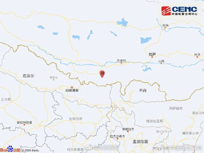 中國地震台網正式測定:01月13日20時57分在西藏日喀則市定日縣(北緯28.42度,東經87.50度)發生4.9級地震,震源深度10千米。