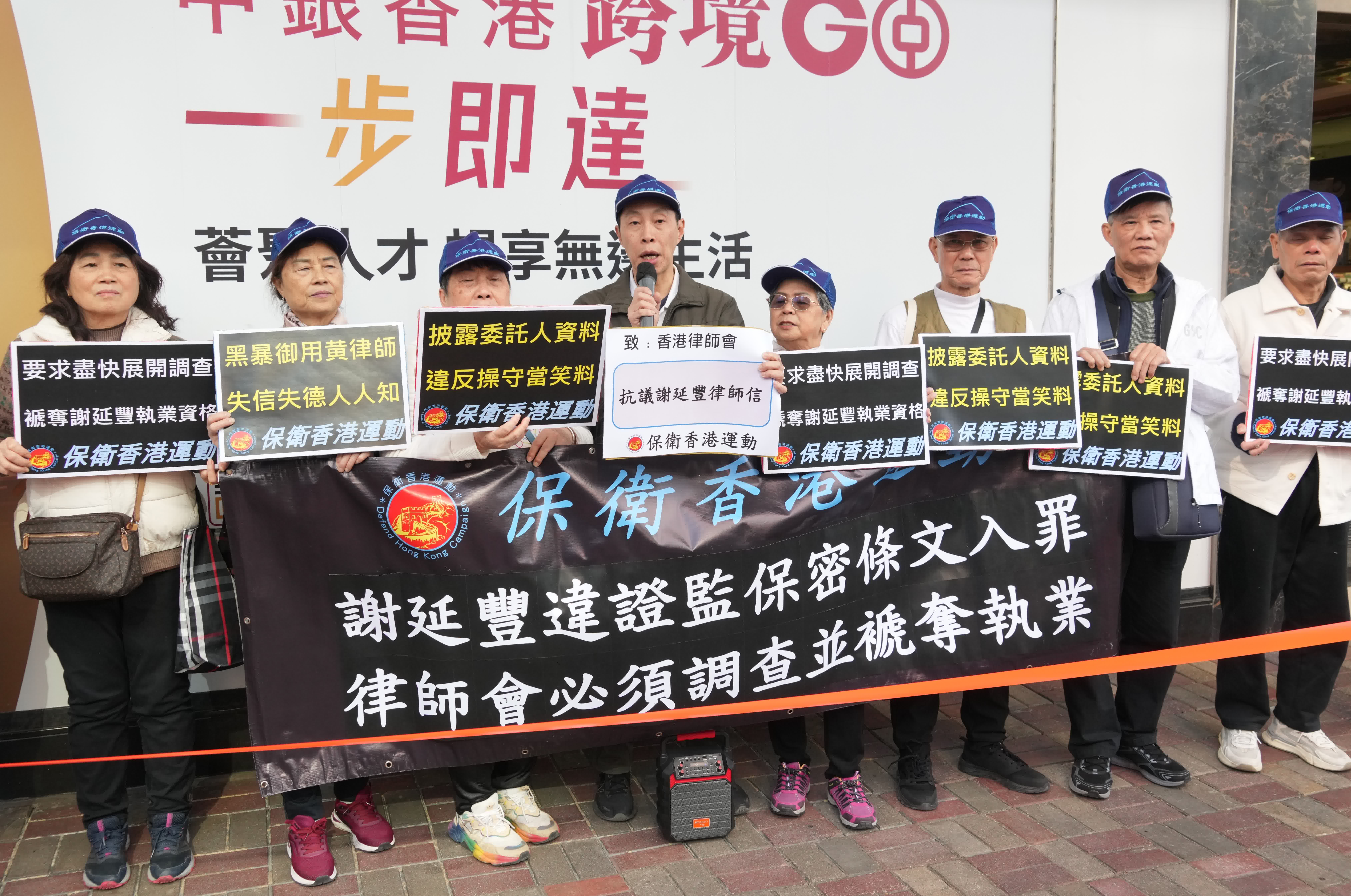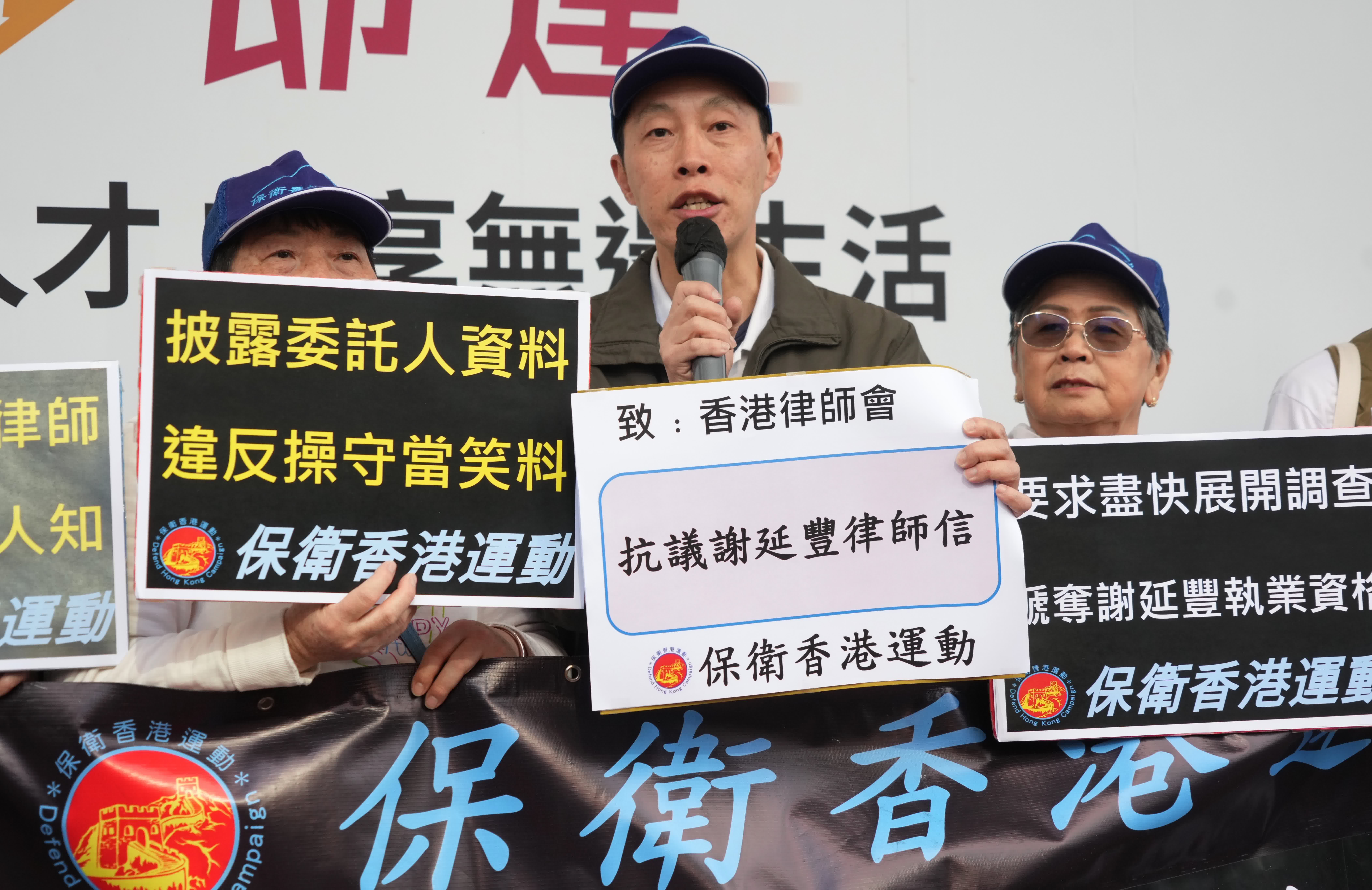 「保衛香港運動」認為,香港律師會應對謝延豐的專業失德行為展開全面調查,盡快採取包括吊銷其執業牌照在內的紀律處分,又指香港律師會作為法律專業的監管機構,有責任維護法律界的專業操守和公信力。