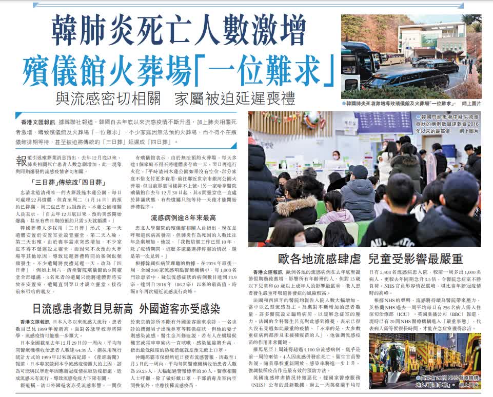 報道引述殯葬業消息指出,去年12月底以來,肺炎相關死亡患者人數急劇增加,此一現象與同期爆發的流感疫情密切相關。