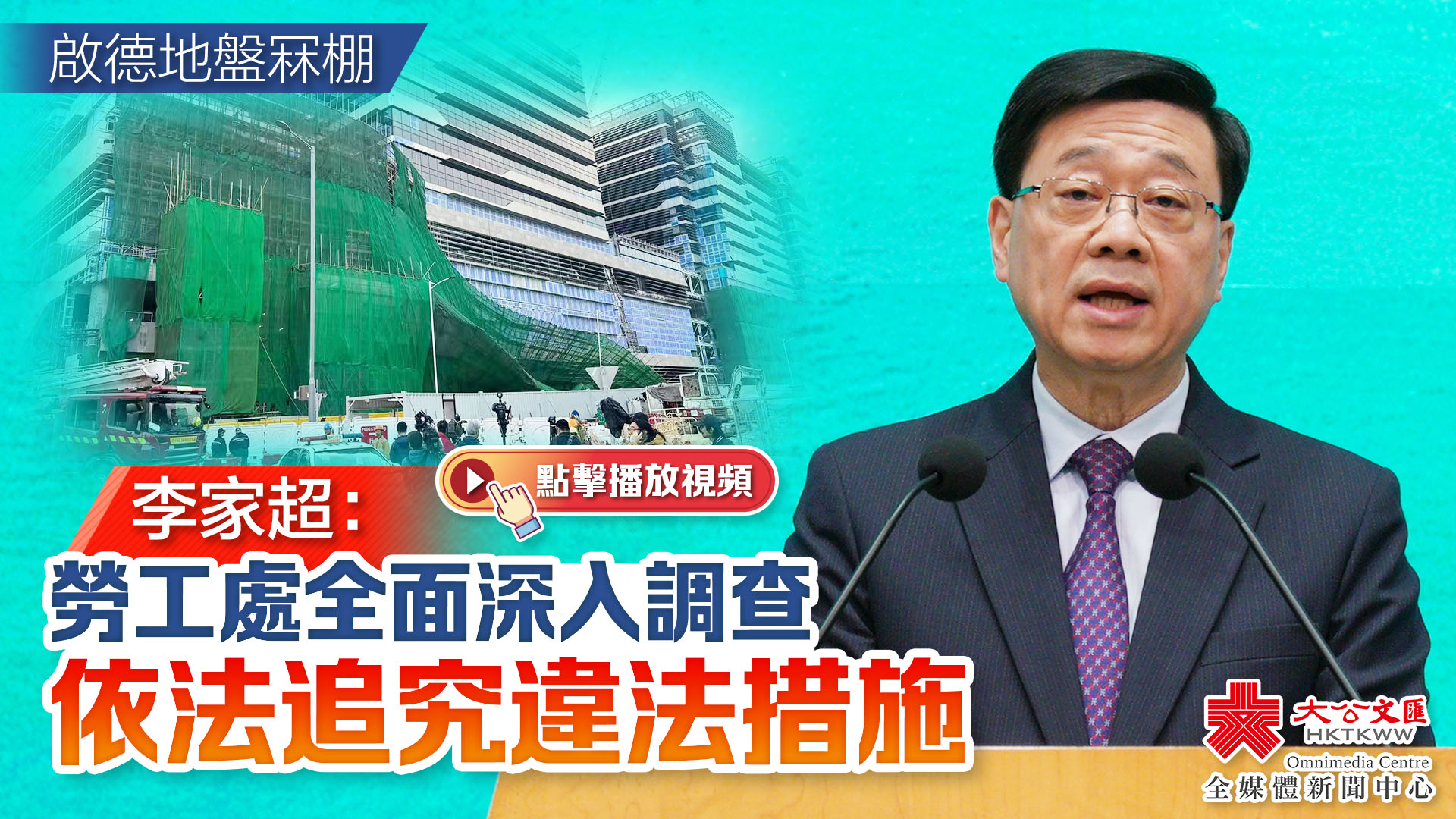 李家超表示,政府已經提高有關法律懲罰,包括罰款提升至1000萬元,嚴重案件可以判刑達兩年。勞工處已即時停止地盤的棚架工作,也會針對大型棚架工程項目全面排查,調查會全面深入迅速,任何違法措施會依法追究。他也呼籲作業者,尤其是地盤管理人員,必須按照法例指引嚴格執行地盤安全措施,任何人員如果發現地盤涉及工序、安排等問題,請第一時間向政府匯報。