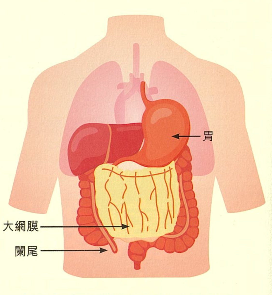 盲腸在大腸的起端部分,是連接小腸和大腸之間一條短短的腸道,位於右下腹近盆⻣位置;而闌尾則位於盲腸的末端,約八至十厘米⻑。闌尾常被視為無用的器官,其實它屬於消化系統中的一部分,含有豐富的淋巴組織,近年有研究指出闌尾在免疫和保持腸道細菌平衡方面有一定的⻆色。