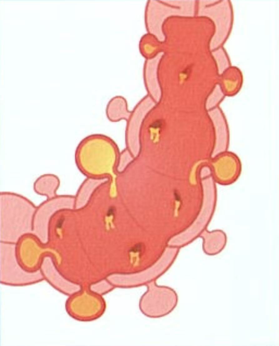 大腸憩室症主要成因是腸內氣體過多、經常便秘和纖維不足,致令腸道蠕動不協調,排便時腸道壓力增加,大腸肌肉不按規律收縮,腸壁較弱的部分位置就會形成像凹陷了的坑洞,稱為憩室。⻑者、男士或免疫力較低的人士較大機會出現大腸憩室症,一般情況均沒有症狀亦毋須處理。