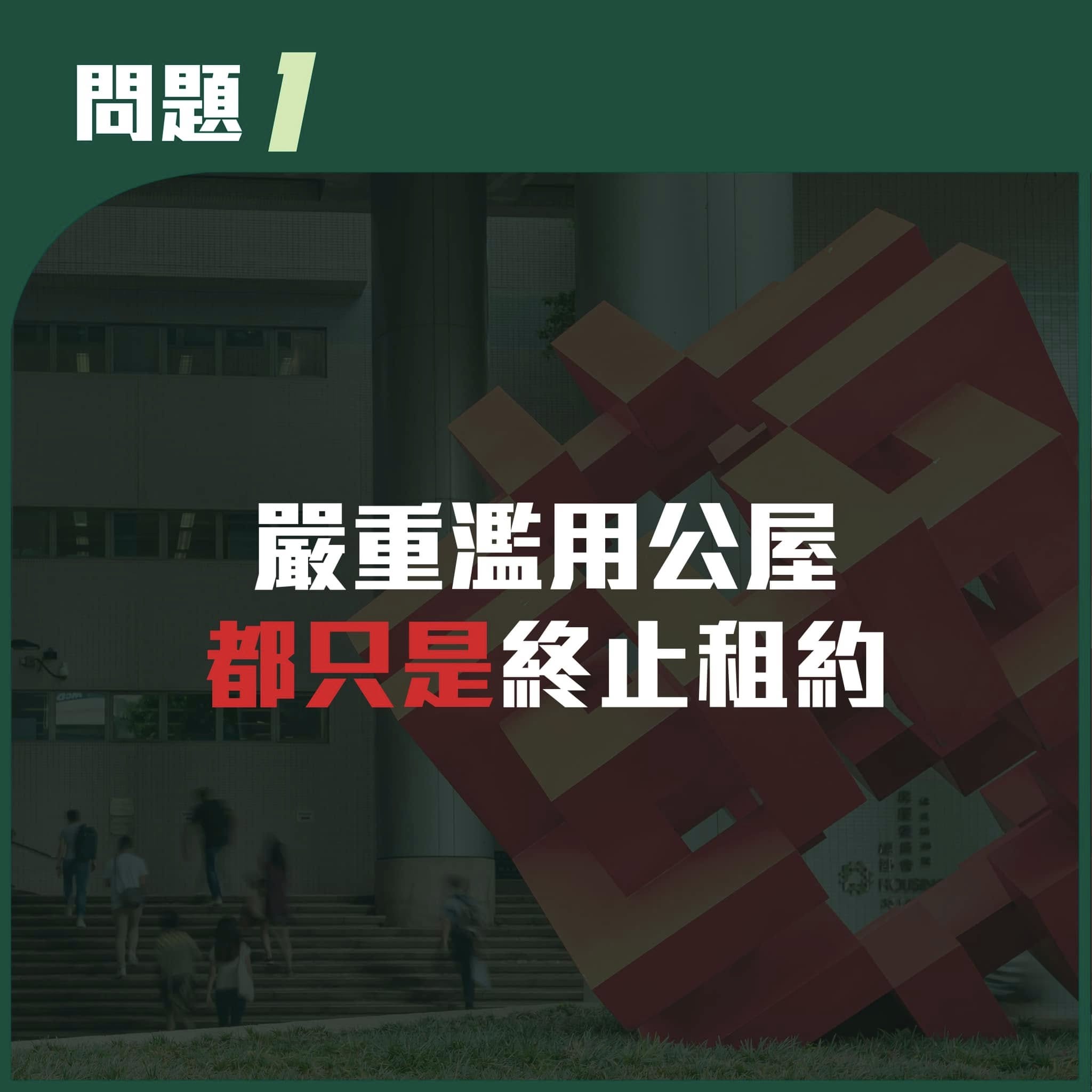 何永賢又感謝各界支持局方和房屋署團隊打擊濫用公屋的工作。隨着工作量的增加,團隊深感有關工作還有可以加強的地方,包括如何在法例上加強阻嚇力,讓嚴重濫用公屋成為罪行,違法者須負刑責;如何讓同事有合理時間對租戶虛假陳述等惡行作出檢控,而不會在一番努力後發現已過了檢控期限;如何賦予同事權力,讓他們不會陷入可以驅逐侵入者、卻無法核證有關人士身份的困境等。