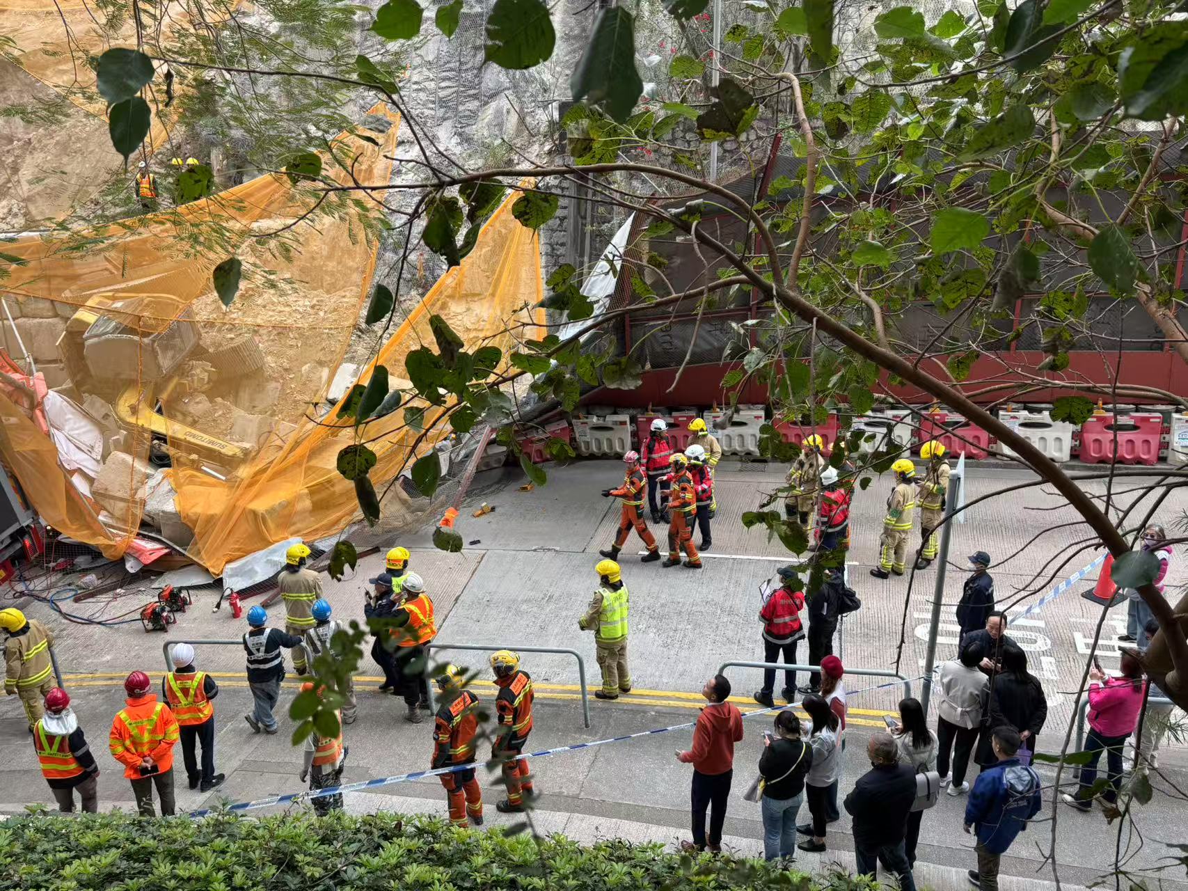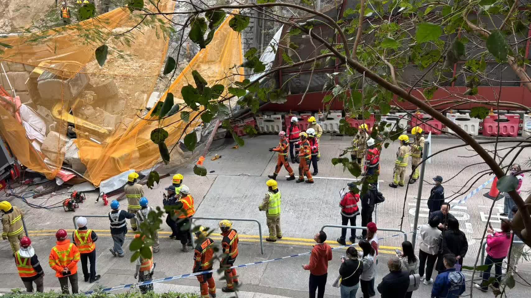 隨後今日上午9時41分,位於藍田連德道2號、康華苑對出的山坡,在進行改善工程時突然發生山泥倒塌。一輛挖泥車沿斜坡滑下,撞毀了連德道行車路的圍欄,再壓中駛經的食環署外判垃圾車的車頭,造成3人受傷。對於這兩起事故,警方、勞工處以及相關領域的專業人士和立法會議員陸續接受點新聞採訪回應事件。