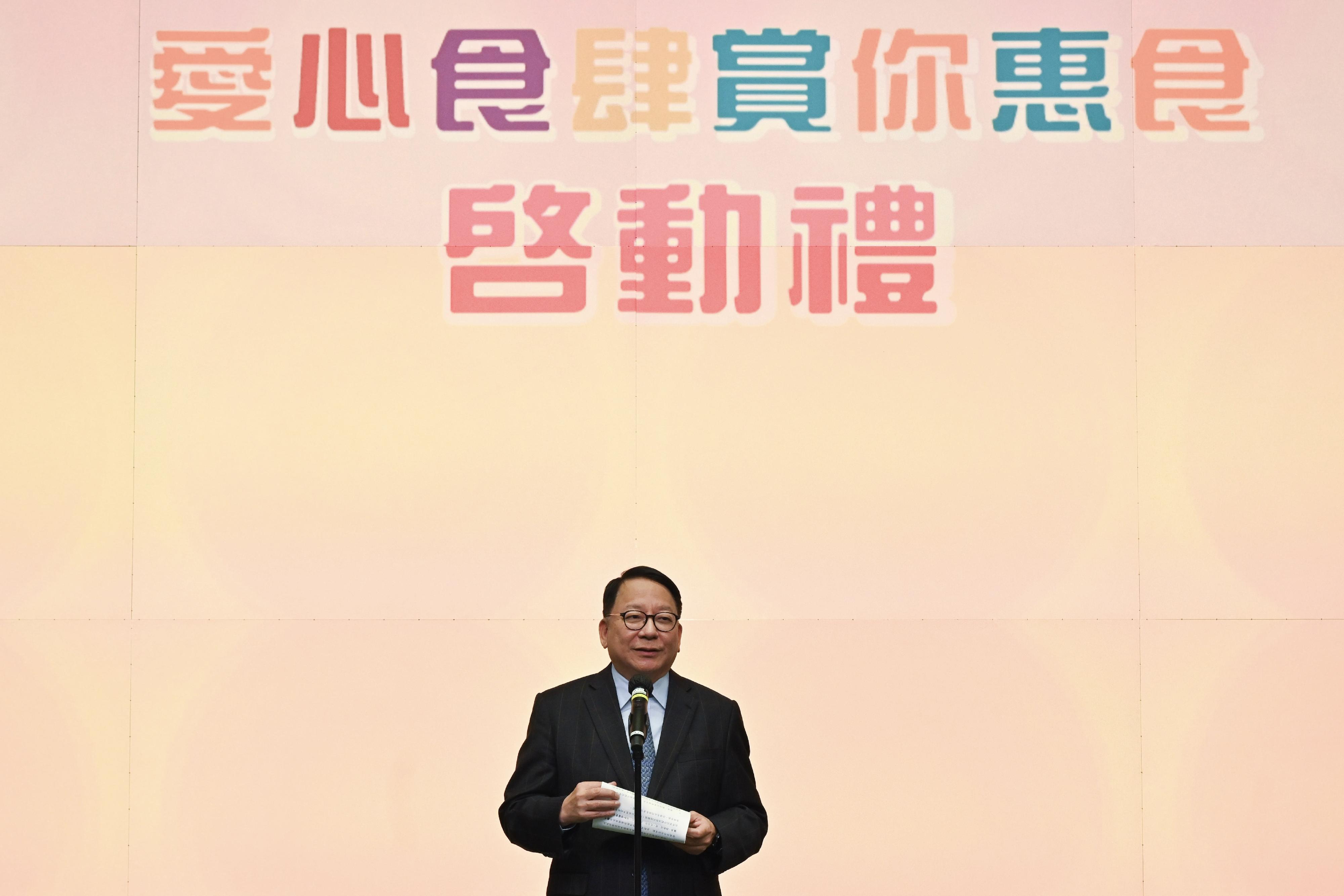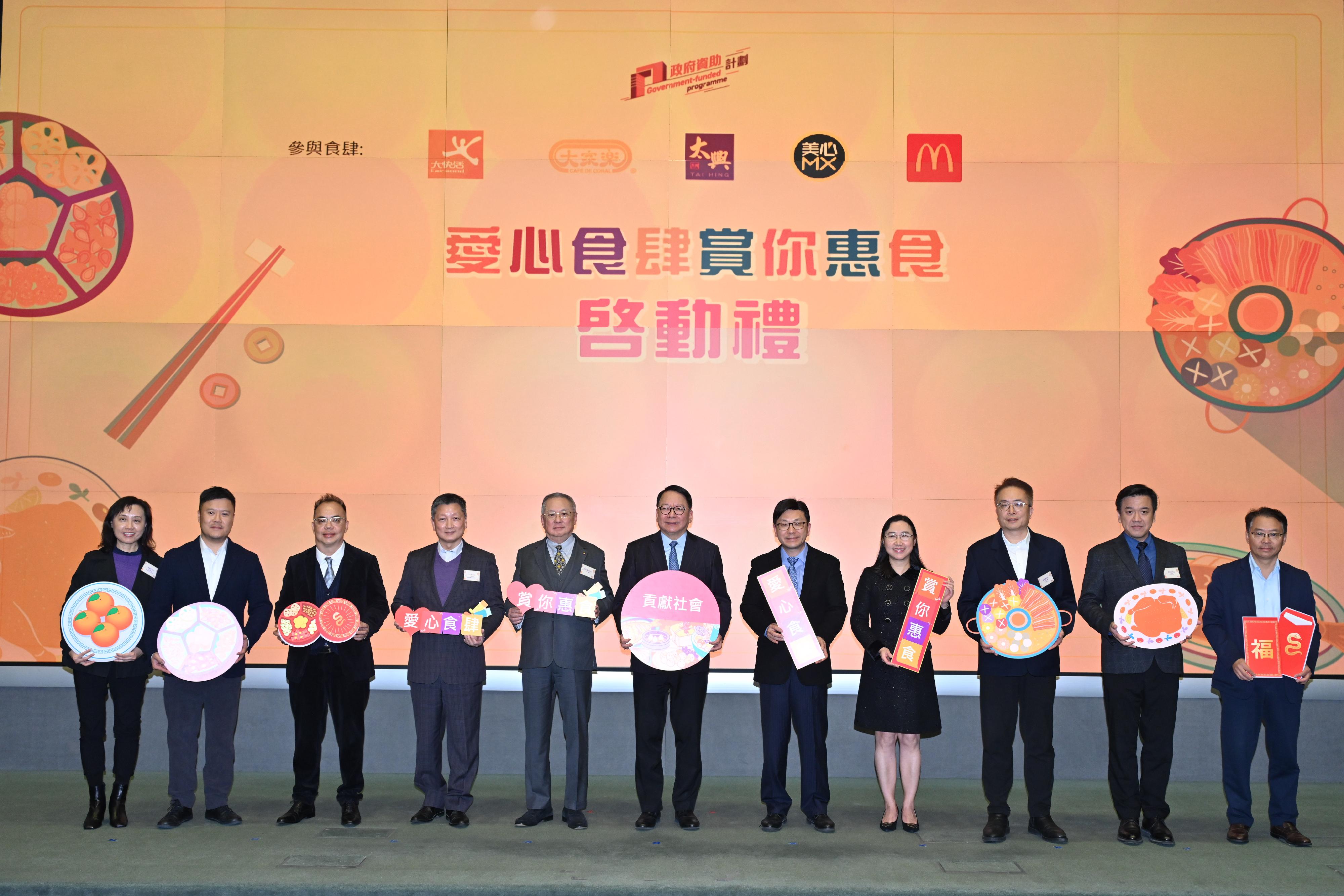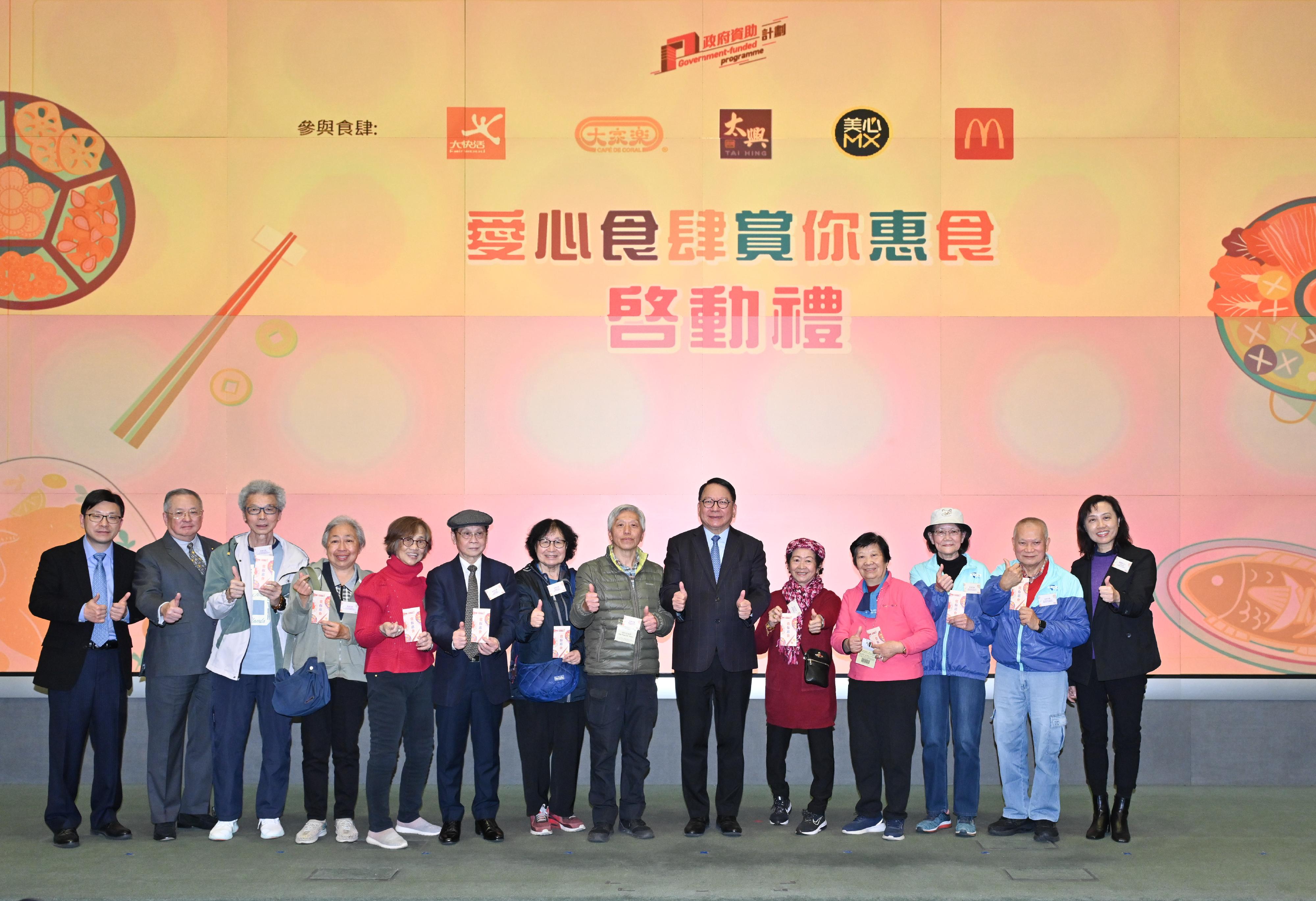 政府今日(一月十四日)舉辦「愛心食肆 賞你惠食」(計劃)啓動禮,向有需要長者派發餐飲優惠劵,傳達社會對長者的關懷。