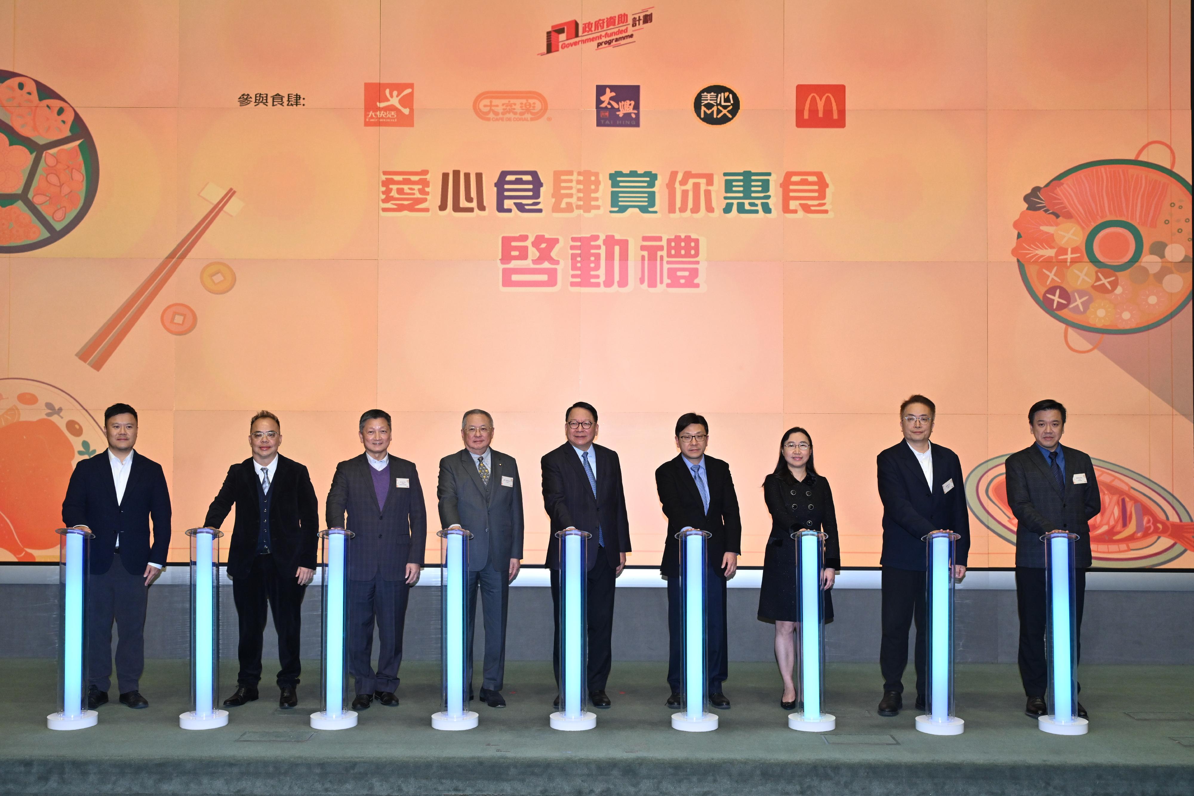 政務司司長陳國基聯同立法會議員張宇人、勞工及福利局局長孫玉菡、勞工及福利局常任秘書長劉焱,以及參與計劃的五個飲食集團代表為活動主禮。啓動禮還邀請了來自長者中心的長者出席,共同見證這項充滿關懷的計劃。