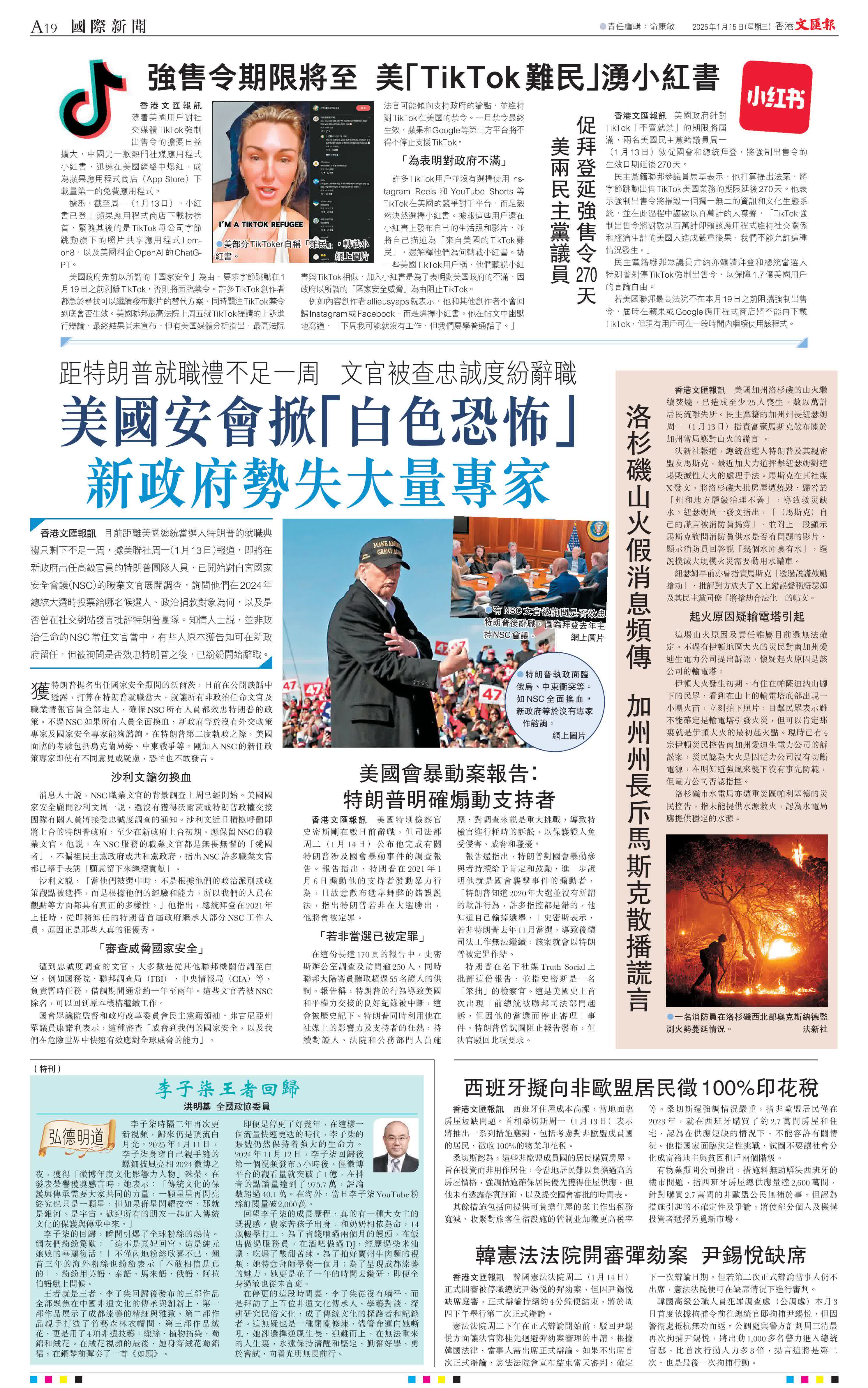 香港文匯報綜合報道,目前距離美國總統當選人特朗普的就職典禮只剩下不足一周,據美聯社周一(1月13日)報道,即將在新政府出任高級官員的特朗普團隊人員,已開始對白宮國家安全會議(NSC)的職業文官展開調查,詢問他們在2024年總統大選時投票給哪名候選人、政治捐款對象為何,以及是否曾在社交網站發言批評特朗普團隊。知情人士說,並非政治任命的NSC常任文官當中,有些人原本獲告知可在新政府留任,但被詢問是否效忠特朗普之後,已紛紛開始辭職。