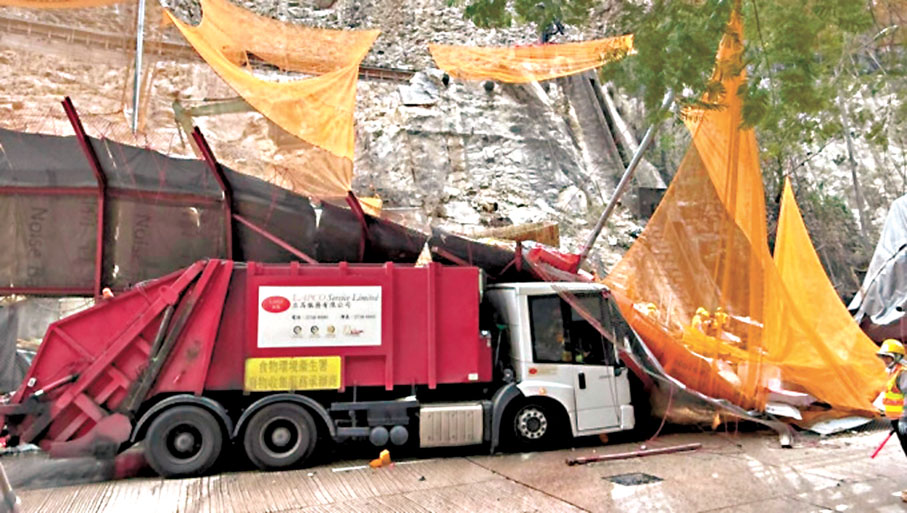 挖泥機墮坡撞毀隔音屏 壓中垃圾車釀3傷