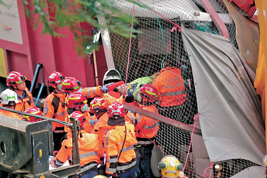(香港文匯報 記者 蕭景源)香港一連兩日發生嚴重工業意外,引發社會關注。前日,啟德承昌道啟德新急症醫院地盤一幅巨型棚架倒塌,導致11名工人受傷,至昨日仍有6人留醫,其中一名女工情況危殆,5人情況穩定。事隔不到18小時,昨日藍田連德道地盤有一部挖泥機由斜坡滾下壓中垃圾車釀成3人受傷(見另稿)。特區行政長官李家超對傷者致以深切慰問,強調特區政府很重視工業安全,勞工處會全面、深入和迅速地調查意外原因,包括就全港大型棚架工程進行排查,有任何違法會依法追究。勞工及福利局局長孫玉菡表示,局方會召集業界相關人士舉行「武林大會」,討論優化及調整工地的工作流程,令風險不再出現。