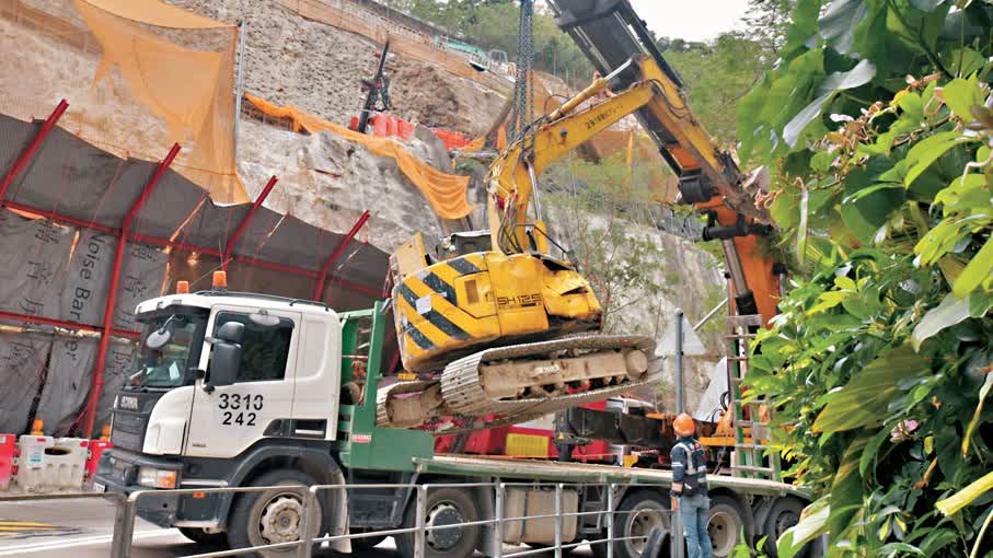 藍田連德道斜坡工程昨晨發生嚴重工業意外。一部挖泥機疑失平衡滾下斜坡,撼爛臨時隔音屏障和圍網,再壓中一輛食環署外判垃圾車的車頭。意外共造成3名男子受傷,其中垃圾車男跟車工人被困車內近3小時,由消防災難應變救援隊救出。調查不排除工程因泥土鬆軟致挖泥機滾下,或涉地盤安全管理問題。土木工程拓展署已即時暫停涉事工序以配合勞工處調查,並要求承建商向傷者及其家屬提供即時及適切的幫助。