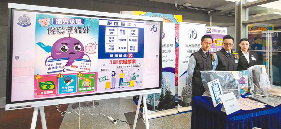 防止罪案辦公室總督察陳詠君昨日表示,騙案種類複雜繁多,但基本上是受害人看到一些優惠、着數、筍工等機會而萌生貪念,繼而自願交出個人資料、銀行戶口資料予騙徒「辦手續」而上當。受害人輕則損失財物,重則就像近期出現的「賣豬仔」求職騙案一樣。有騙徒甚至會包食宿,幫忙預訂機票,實際上是請君入甕,待受害人飛抵外地,即由詐騙集團安排司機駕車送往詐騙園區。