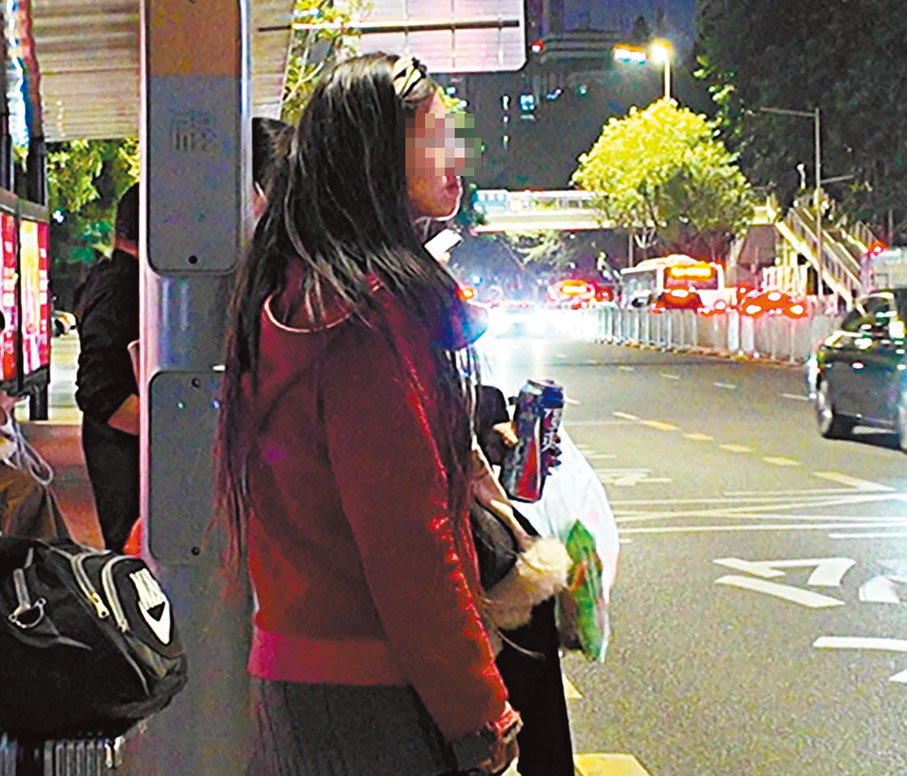追逐半個多小時後,她終於在巴士站前停下來。為免刺激她情緒,記者在不遠處觀察,未幾見她情緒稍為穩定,才上前釋出善意,用廣東話說:「我們沒有惡意,只想幫你。你是否需要吃飯、需要去哪裏?(我們)可以提供協助。」