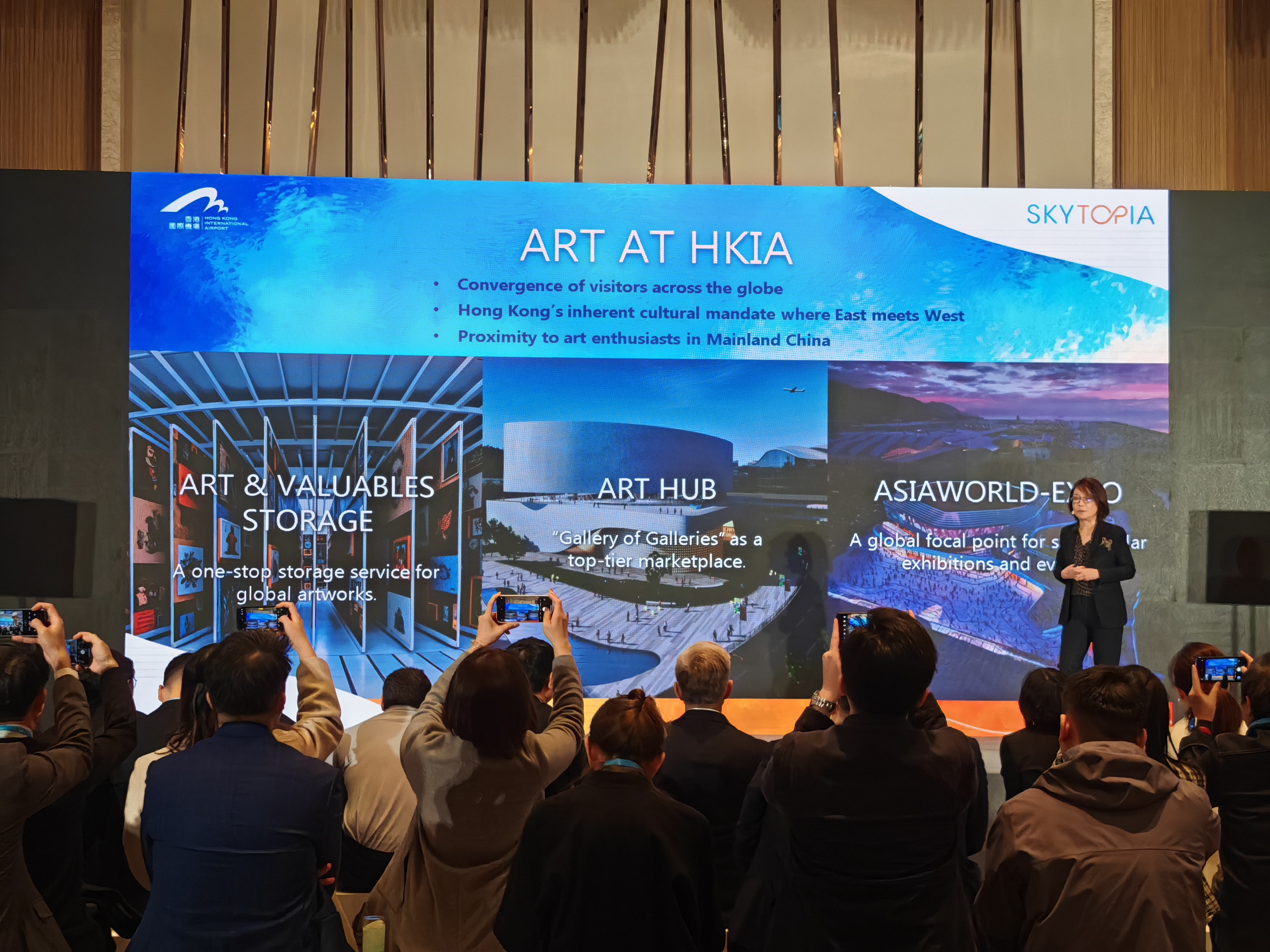 機管局署理行政總裁張李佳蕙稱,機管局計劃在機場構建藝術生態圈,發展香港首個匯聚藝術創作、鑒賞及交易於一身的一站式項目,建構集畫廊、藝術空間的社群,亦會發展全港首個專為藝術品儲存而建造的大型倉儲設施。