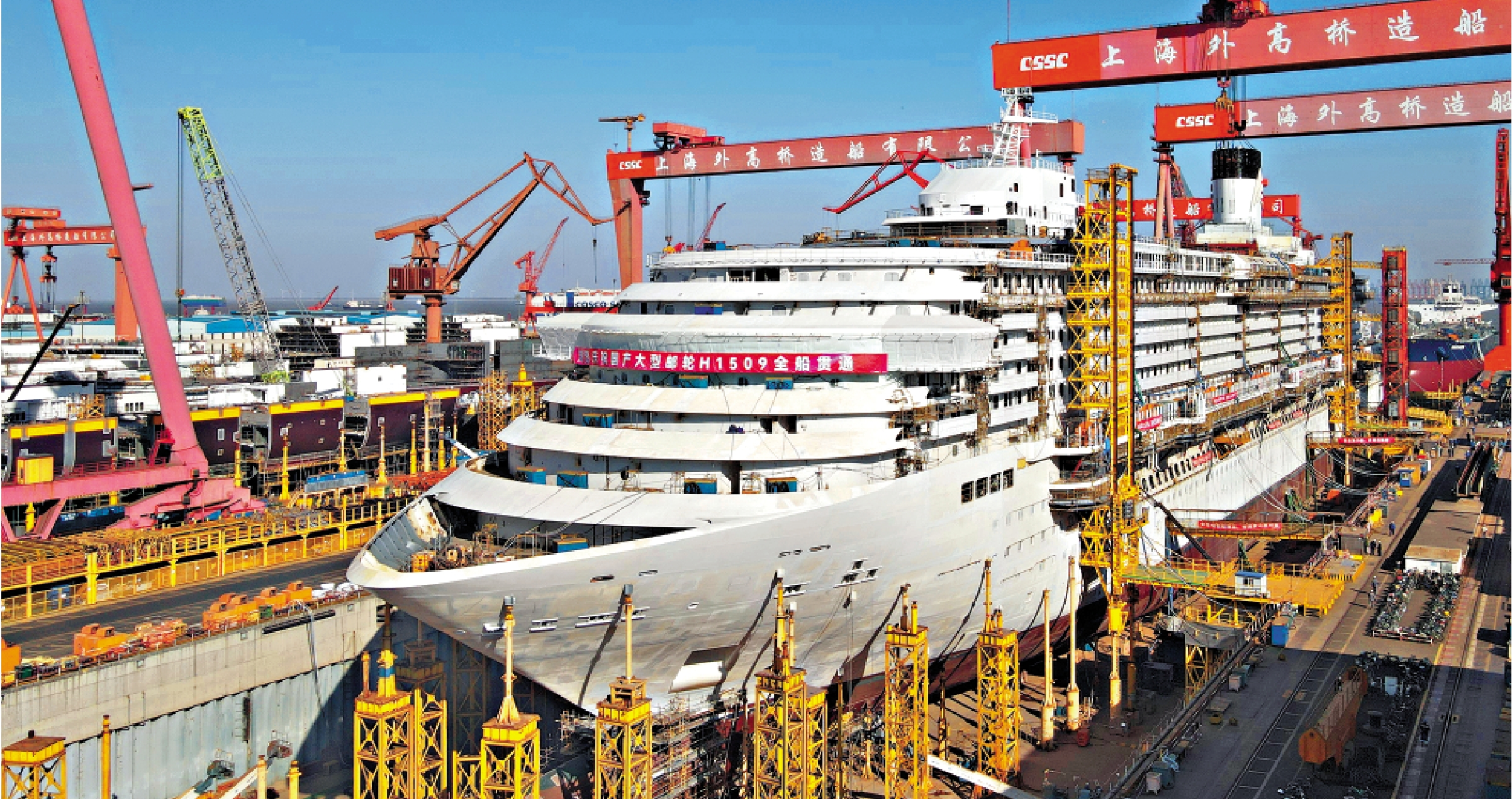 記者了解到,在全球18種主流船型中,中國有14種船型的新接訂單位居世界首位,包括多用途船、汽車運輸船、集裝箱船等。雖然在液化石油氣運輸船、液化天然氣運輸船、拖船和郵輪這4種船型上尚未拿到世界首位,但第二艘國產大型郵輪「愛達·花城」號從進入船塢總裝搭載到全船貫通用時不到9個月,與首艘國產大型郵輪「愛達·魔都」號相比,縮短了2個多月,顯示出中國在這一領域的進步和發展潛力。