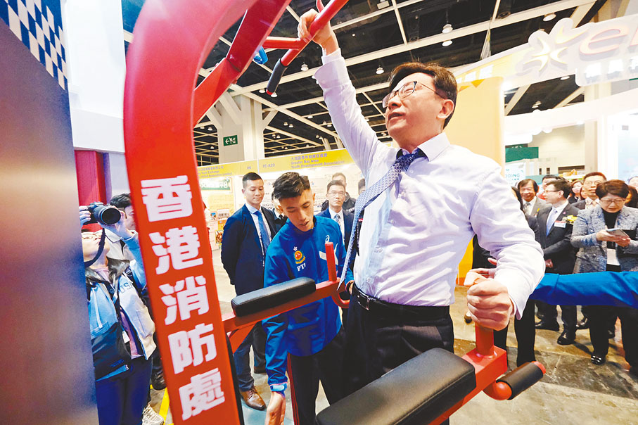 他表示,博覽會是教育和職業發展的結合,香港特區政府在教育方面投入巨大的資金和資源,並且還在不斷增長。目前為止,香港73%年輕人正在接受高等教育,十年前這一比例為67%,從中看到了進步。