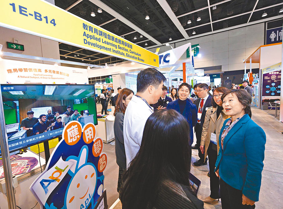 特區政府教育局局長蔡若蓮及常任秘書長李美嫦昨日到場參觀教育局的攤位。蔡若蓮表示,鼓勵有志投身教育專業的人士加入教育局行列,為推動香港優質教育貢獻力量。