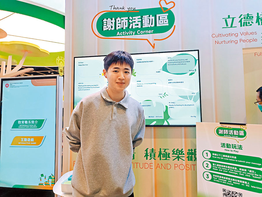 在香港大學修讀文學士二年級的周同學,未入讀大學前已經參觀過教育及職業博覽,今次再來是想多了解升學及就業的機會,例如大灣區內其他城市的升學就業機會,「我本身主修文學士,展覽中提供到故宮和敦煌等一些博物館的暑期實習計劃資料,非常吸引,現場工作人員也細心解答了我的問題」,令他對今年暑假報名參加實習計劃的信心和意慾有所增加。