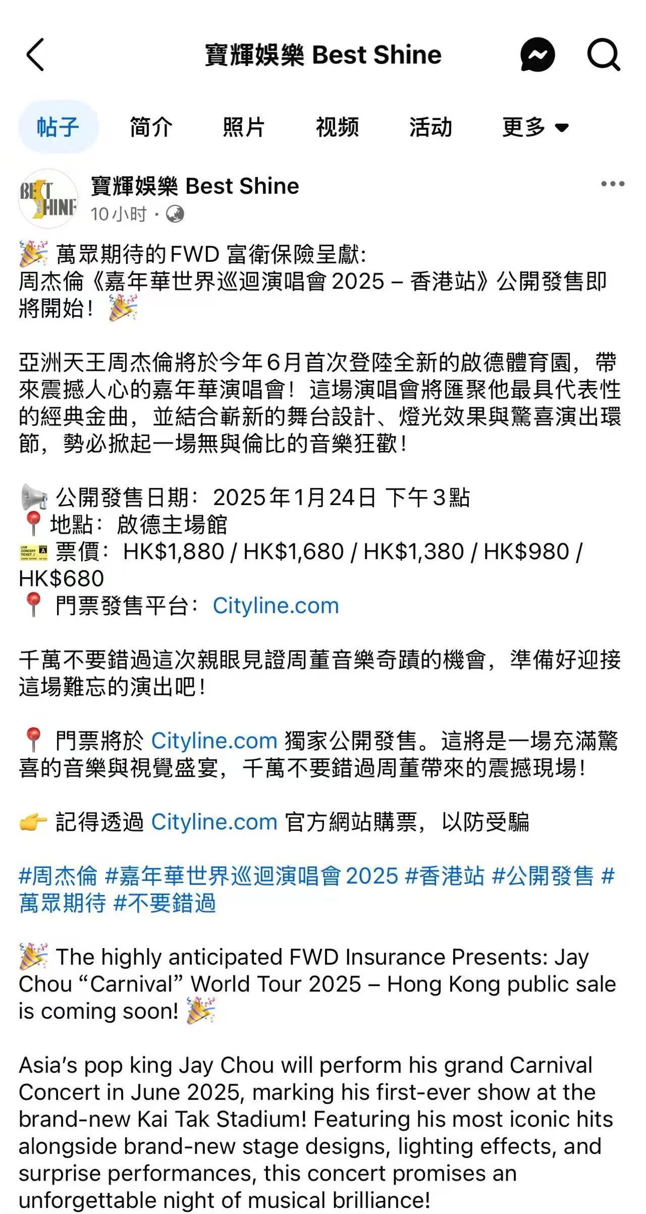 粉絲們可密切留意官方平台,把握最後機會搶飛,一睹周董風采!大家亦可提前在Cityline網站上註冊為會員,以便順利訂票。
