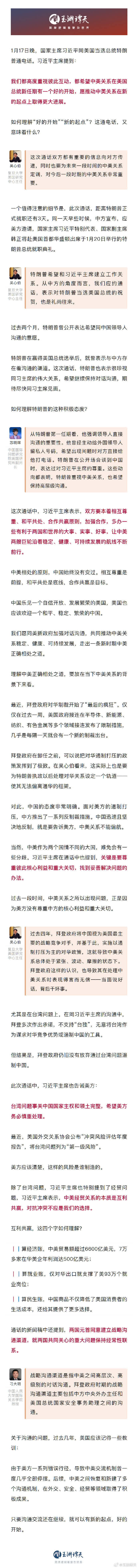 1月17日晚,中美元首通電話。一個值得注意的細節是,此次通話,距離特朗普正式就職還有3天。