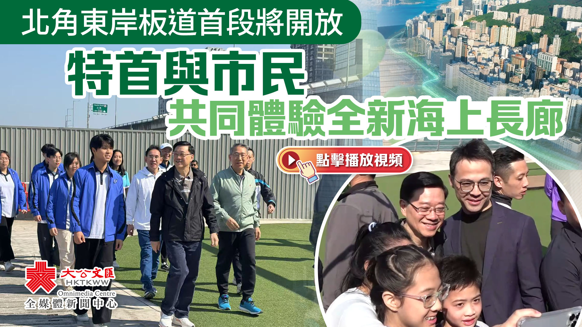 大公文匯全媒體報道,位於北角的東岸板道首段將於1月26日開放予公眾。今日(18日)發展局和東區民政事務處今邀請市民和團體試用臨海板道,行政長官李家超亦有到場體驗,並與市民親切交流。