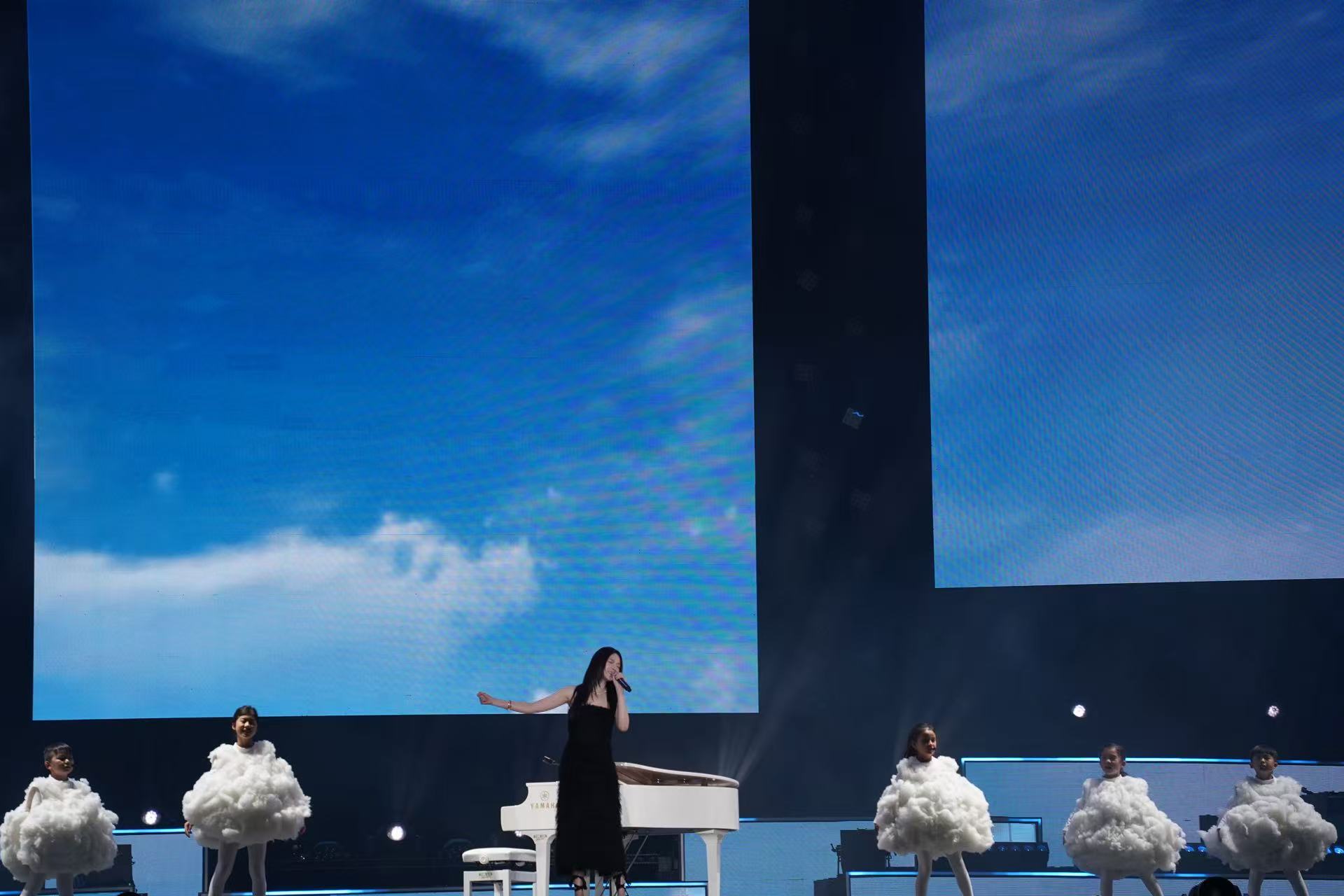 雲浩影(Cloud)與幾位身穿「雲朵」造型的小朋友合唱勵志歌曲。她和小朋友互動交談,並對觀眾說,「在啟德的第一個show,很興奮」。