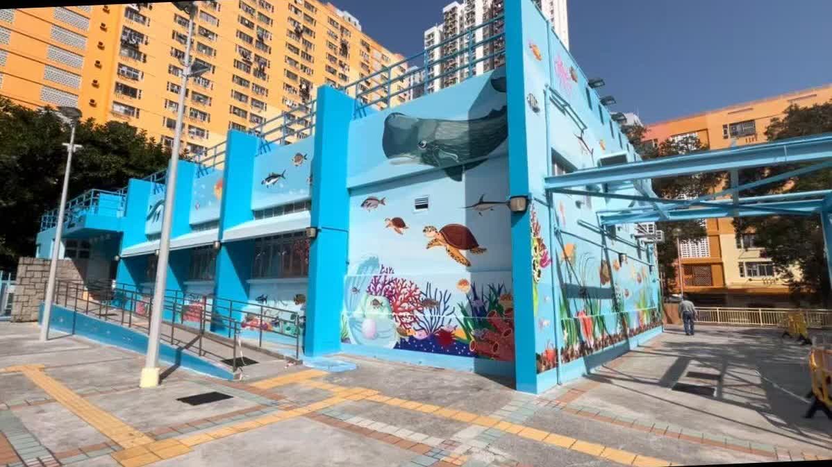 會堂外貌的新設計以海洋世界為主題,外牆和天台以藍色為主調,搭配色彩繽紛的海洋生物圖案,並在主要玻璃窗上安裝了LED透明顯示屏,播放栩栩如生的海底影像,使整個會堂宛如一個充滿活力的立體「水族館」。這一創新設計不僅美化了居民的生活環境,更成為區內外居民及遊客的熱門打卡地。