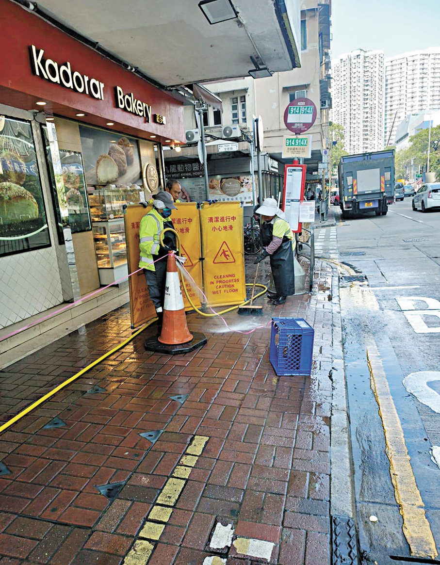 污水倒灌事件於昨日上午10時許發生,渡船街一方的文英樓簷篷湧出污水流落地面,現場臭氣熏天。渠務署及食環署相隔兩小時到場通渠及清潔。香港文匯報記者昨到場了解,現場已大致清理乾淨。