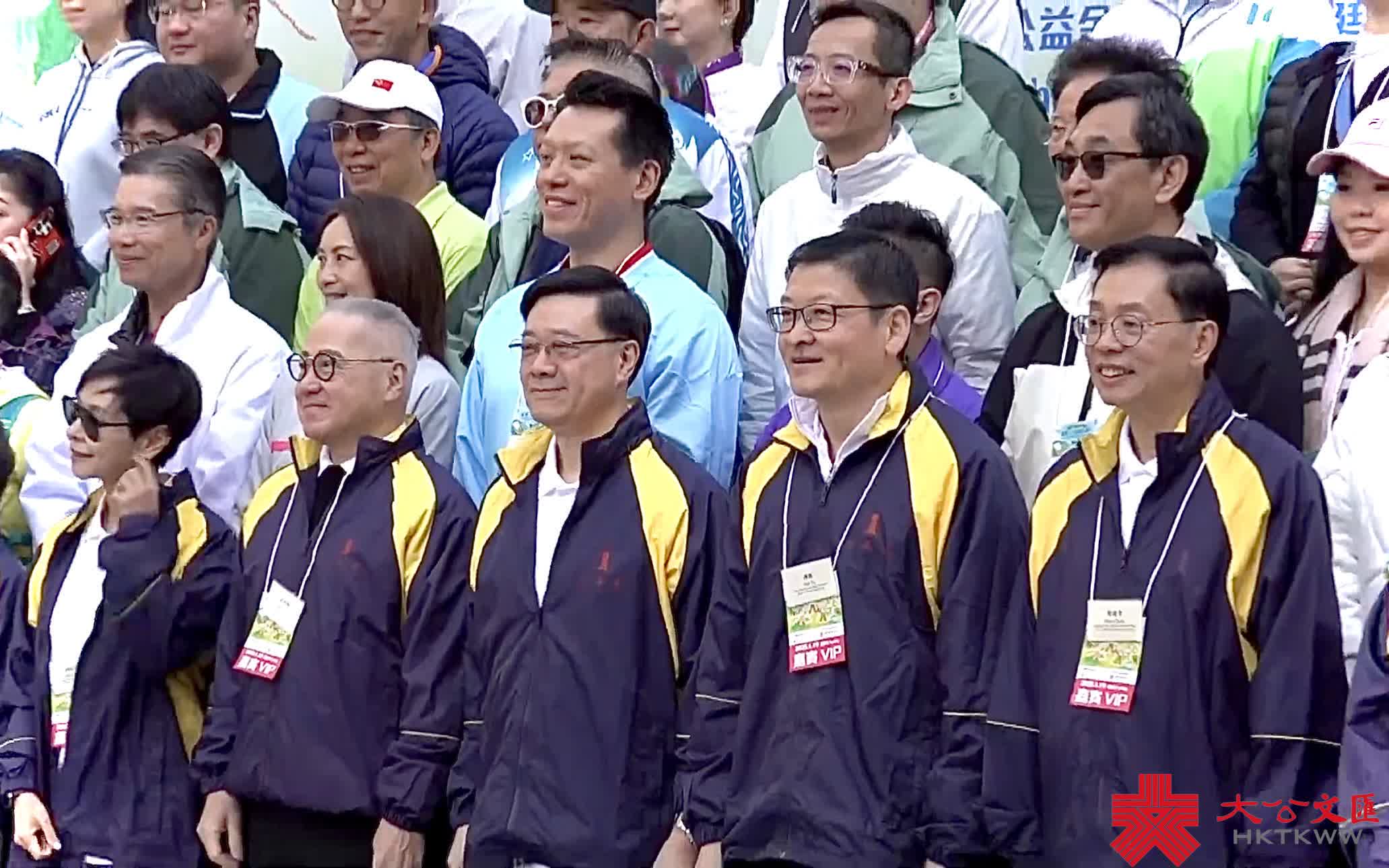 大公文匯全媒體報道,2024/2025年度「港島、九龍區百萬行」於今早(19日)舉行,行政長官李家超主持開幕禮。大會表示,今屆百萬行吸引超過8000人、組成超過100隊步行隊伍及個人參加者。