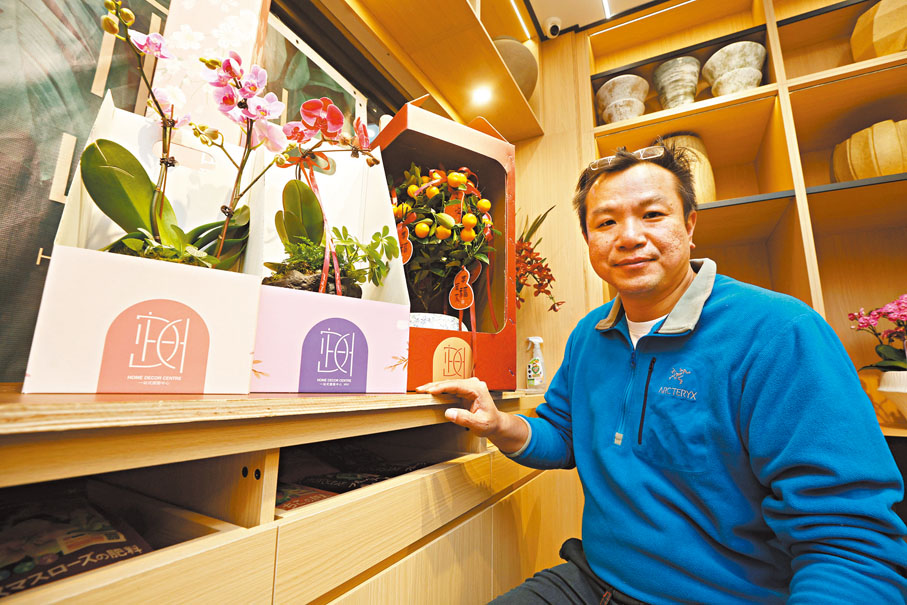 他分析,疫情期間花店生意暢旺, 與市民無法外遊,較多時間在家,因而更關注家居環境有關,同時年宵亦一度因應疫情停辦,「開關之後明顯感覺生意下跌了,市民可能北上消費,或發展其他生活樂趣,對花藝未有之前重視。不少人也從花店轉向年宵濕貨市場選購,所以去年我們整體生意是有些蝕,今年想靠年宵這一塊攞返來。」