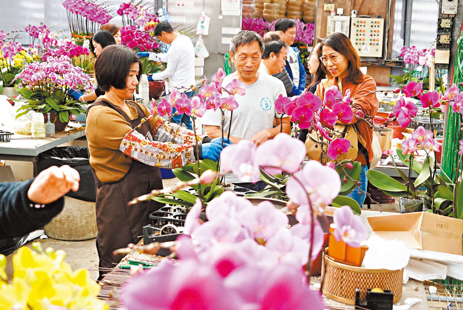 談及香港花業生態,葉先生昨日接受香港文匯報訪問時直言,勝敗全繫於過年這一個月,「全年一半的收入都是來自年花,也就是說,這個月相當於過去11個月生意的總和。」他說,花店平日固然有穩定客群,主要是新界村屋居民,但需求相對零散,遠不及過年期間集中,花店亦會不時承接住宅花園的園藝工作,以維持收入。「我們除了花店,也有社交平台賬號,接受網上預訂,最近幾天每天的訂單差不多是平時一整個月水平,到臨近過年估計還有更多。」
