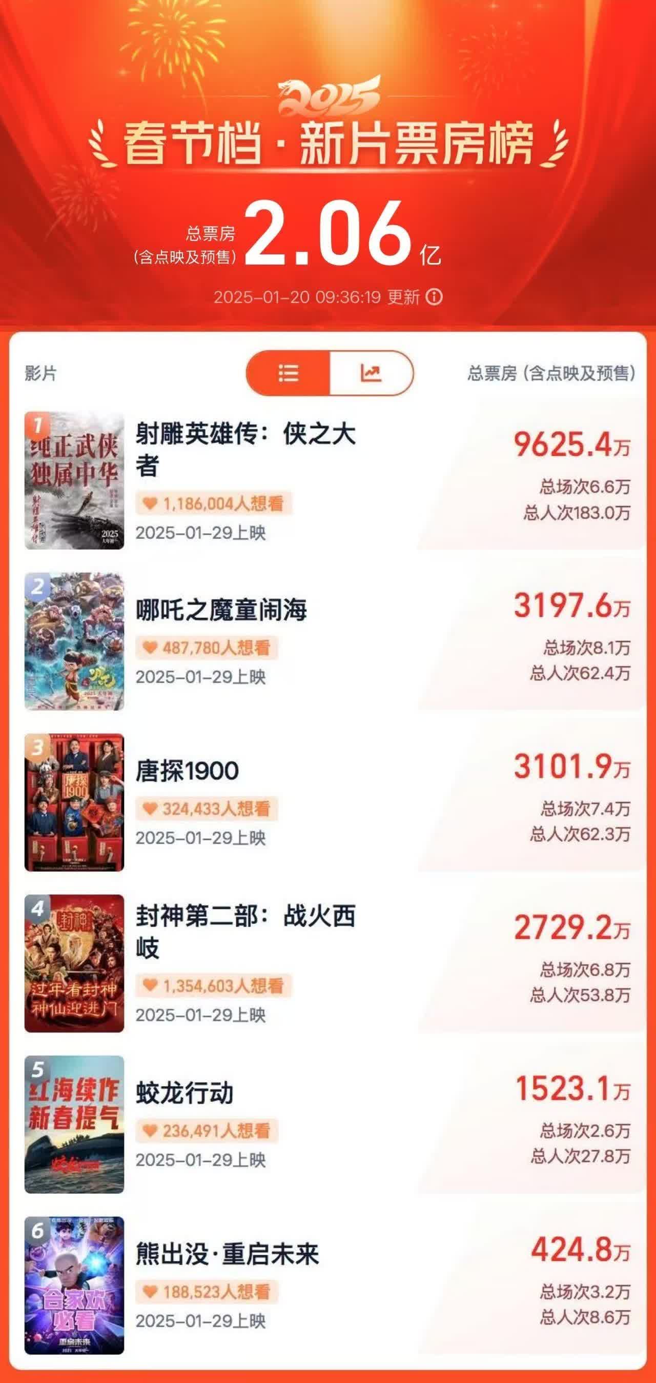 破2億!2025春節檔電影預售總票房再破紀錄