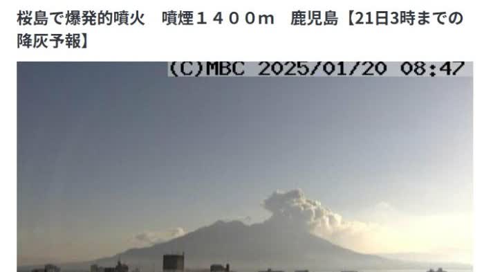 據中新網援引「南日本放送」報道,當地時間20日上午8時42分,位於日本鹿兒島市櫻島的南嶽山頂火山口發生了「爆炸性」噴發。