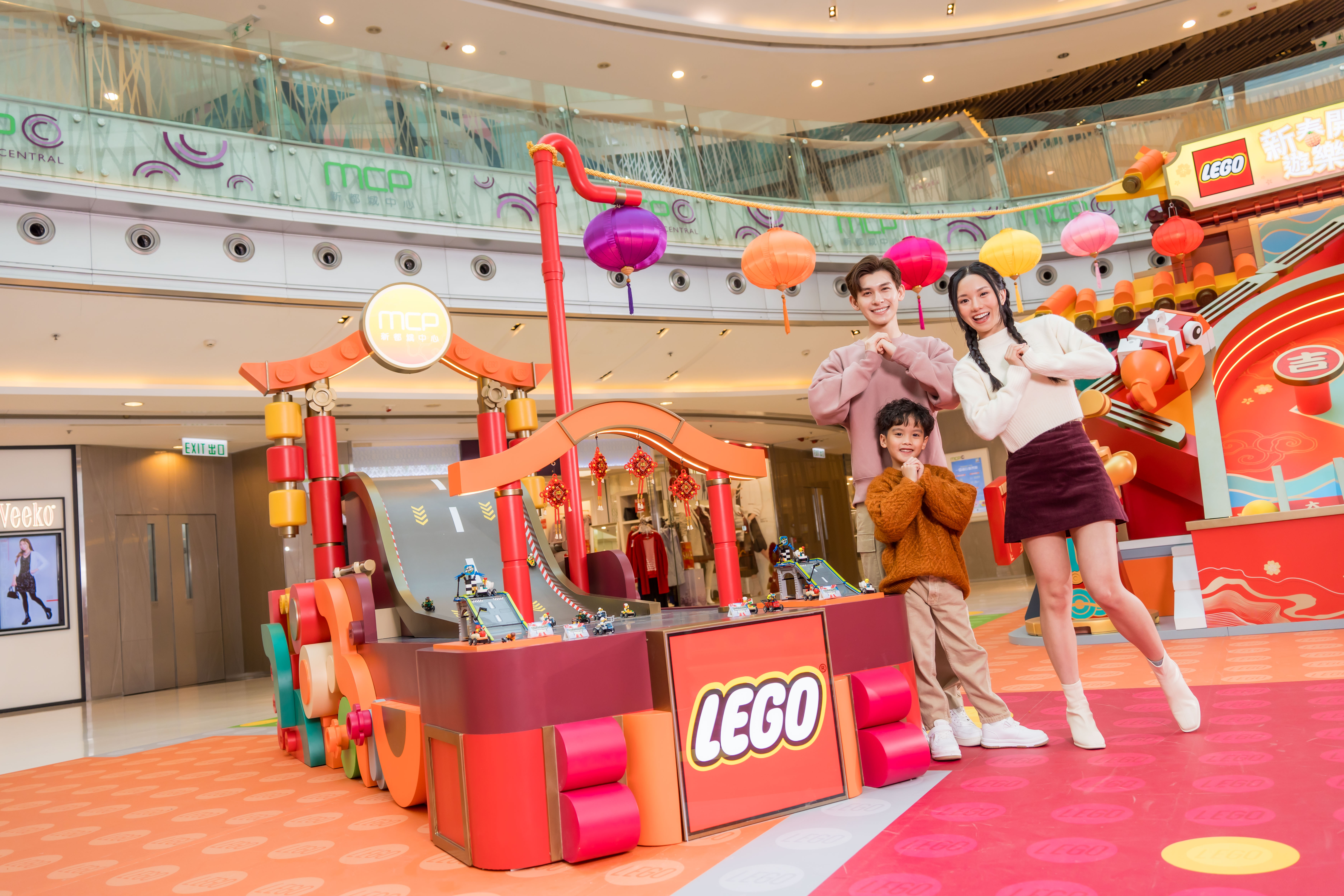 恒基地產旗下將軍澳MCP新都城中心聯乘LEGO Group打造「新春開運遊樂園」, 人見人愛的LEGO®角色紛紛換上喜慶紅色新春服裝向大家拜年,並踴躍地為大家逐一介紹場內的5大打卡及必玩遊戲區,包括新春開運必到的4米高巨型「MCP開運彈珠台」、肥嘟嘟招財福貓親自坐陣的「貓肥屋潤主子殿」、巨型3.5米高LEGO®桃花樹下的「大吉大利許願池」、充滿動感的賀歲賽車「步步GO昇極速挑戰」等,憑優先體驗遊戲證完成5個遊戲後更有機會換領MCP獨家LEGO®福蛇擺設1份。