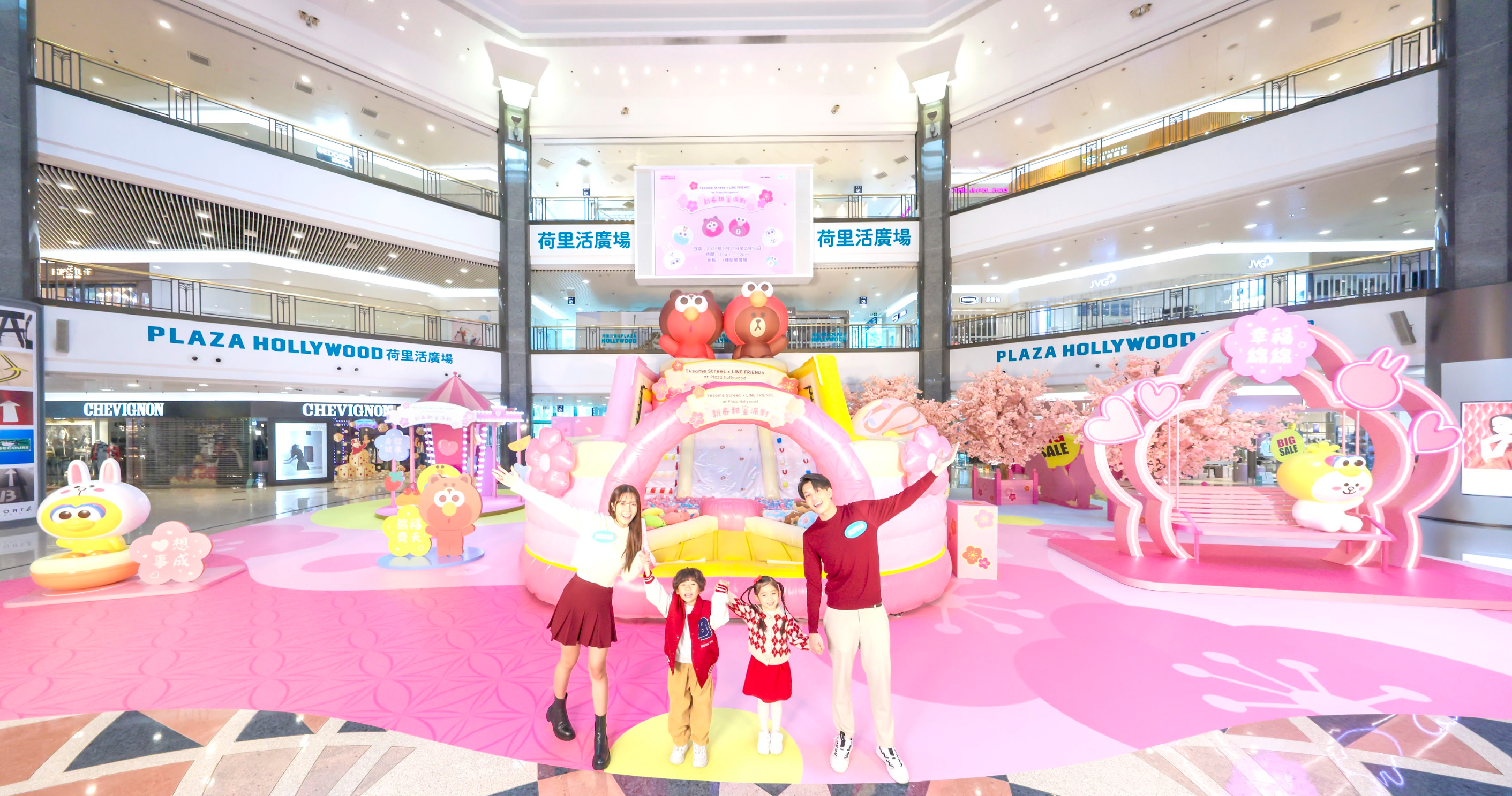 即日起至2月16日期間,Sesame Street成員及LINE FRIENDS朋友仔誠邀大家親臨荷里活廣場一齊大開派對!現場設有6米高 Sesame Street×LINE FRIENDS 聯乘造型的Sesame Street Elmo及LINE FRIENDS BROWN「盤滿缽滿糖果滑梯」,另一亮點「財源滾滾氹氹轉」打卡位則寓意新一年「轉」出財源滾滾的運氣。