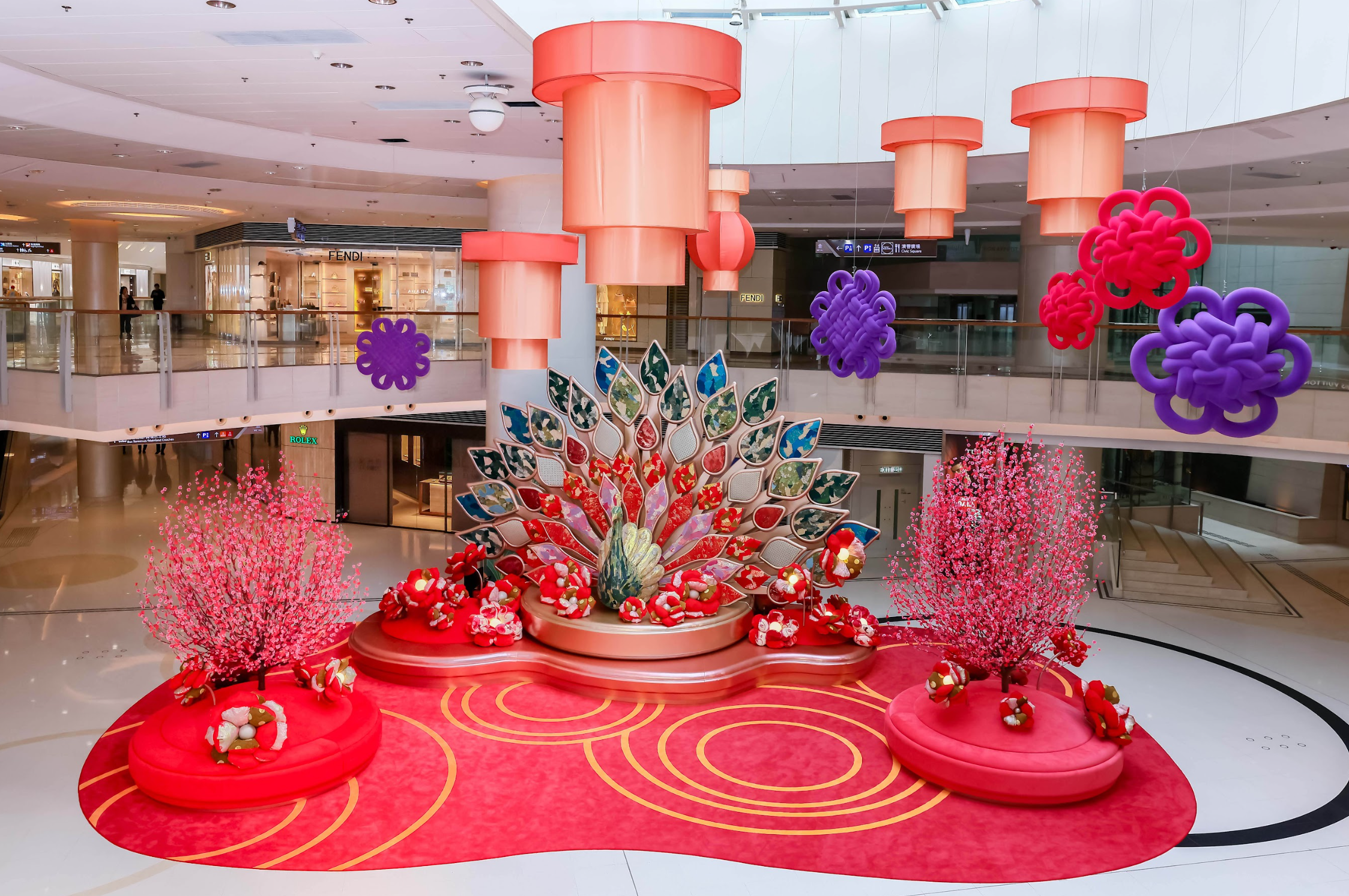 ELEMENTS 圓方5.5米高布藝孔雀新春藝術裝置
