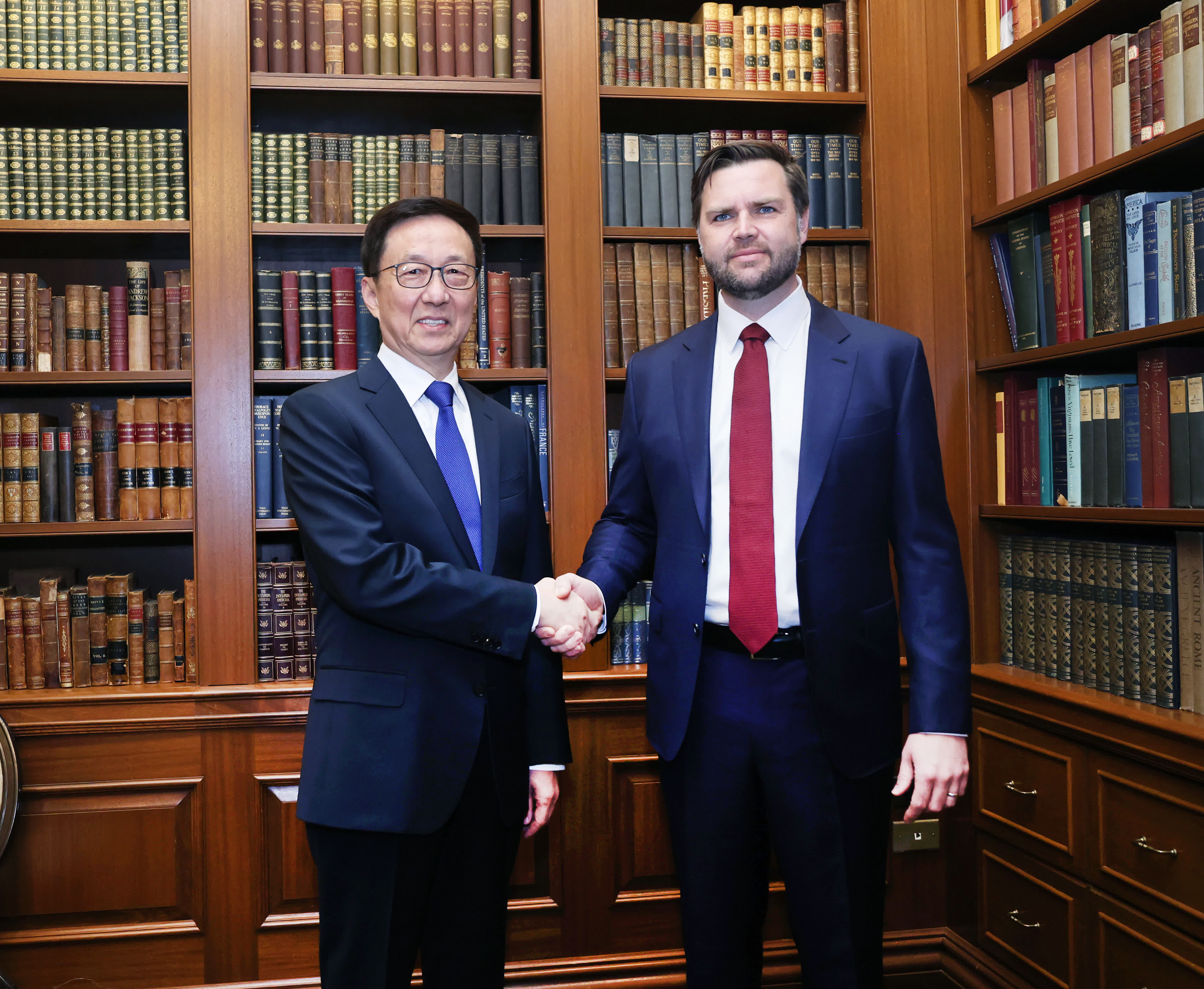 韓正首先轉達習近平主席對特朗普當選總統的問候,並祝賀萬斯當選。韓正表示,近日習近平主席同當選總統特朗普進行了重要通話,就下階段中美關係發展達成許多重要共識。中方願同美方一道,堅持元首外交的戰略引領,落實好習近平主席同特朗普當選總統達成的重要共識,推動中美關係穩定、健康、可持續發展。