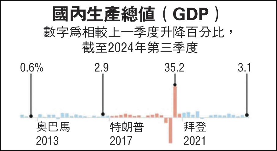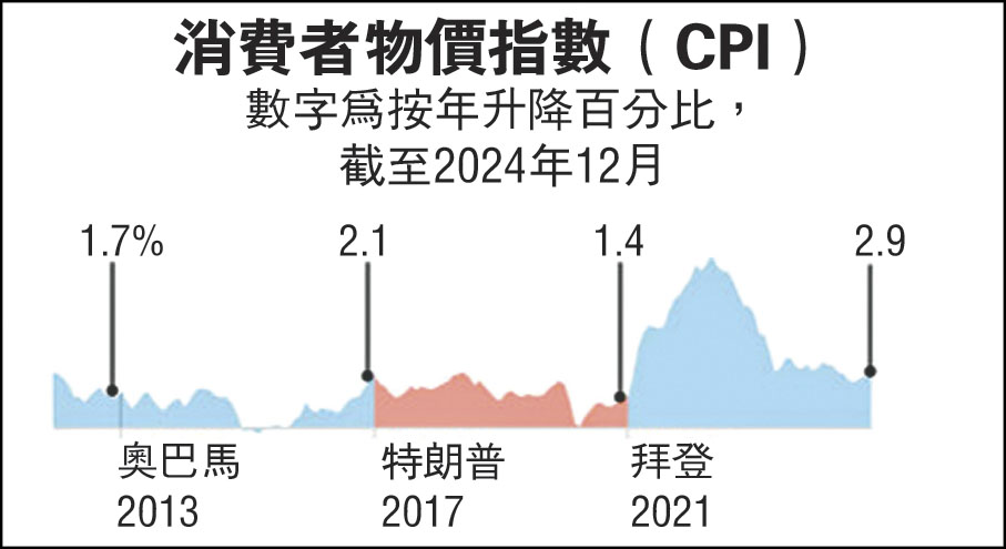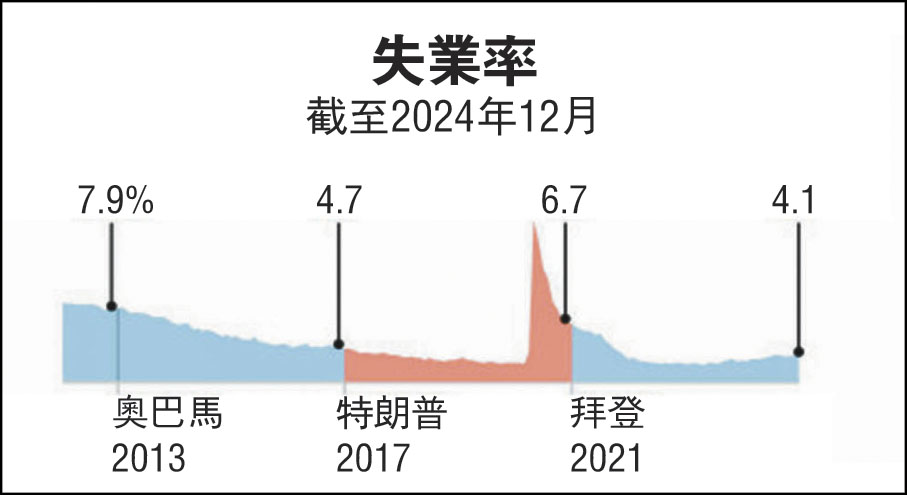 香港文匯報報道,從2017年特朗普首次就任美國總統,到今年重返白宮,美國在過去8年經歷新冠疫情和高通脹。《華爾街日報》總結數據,對比特朗普首個任期上任時,以及奧巴馬、拜登就任總統時美國的經濟情況。