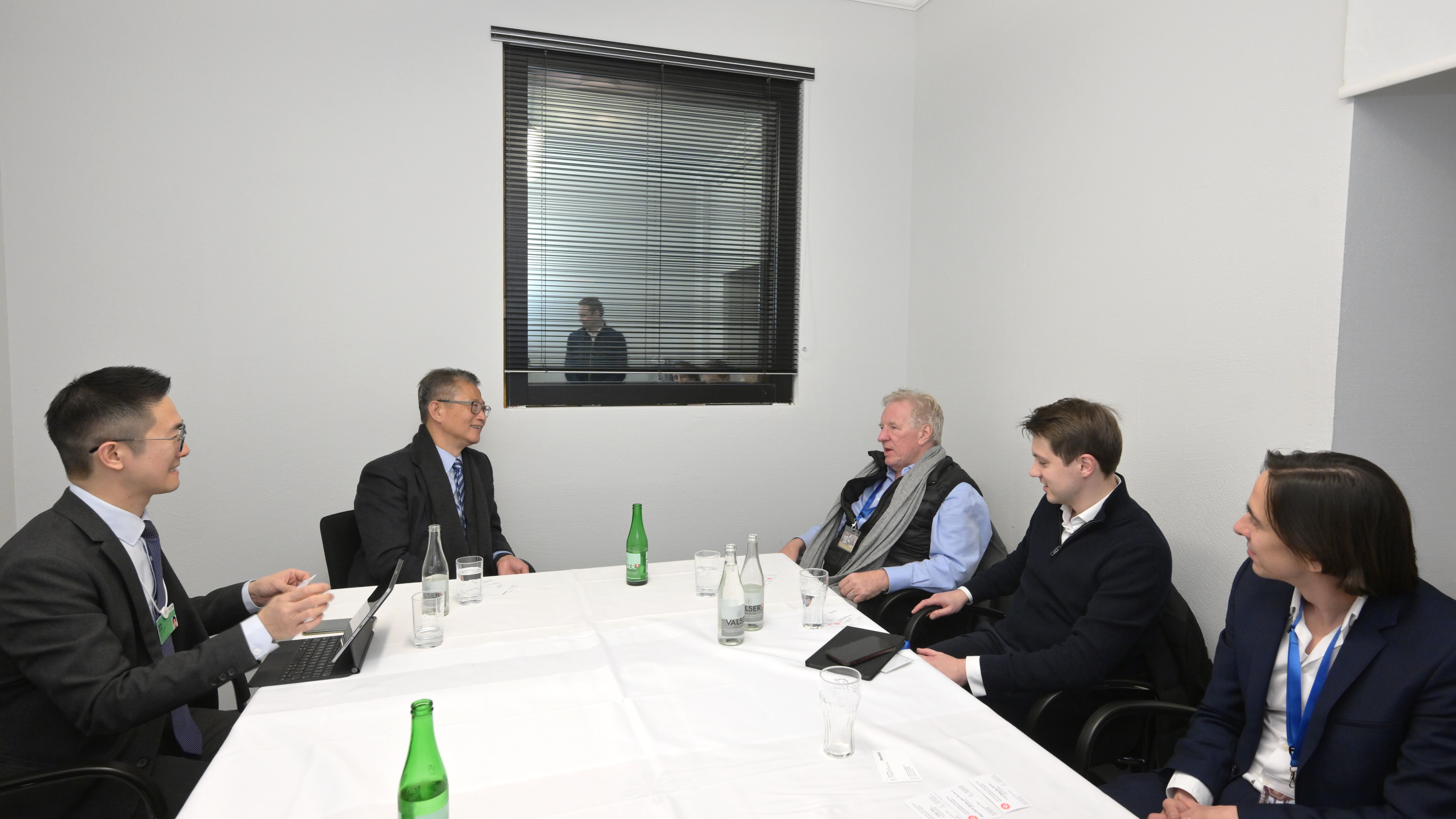 陳茂波抵達後,與多位出席世界經濟論壇年會的金融工商界領袖共進午餐,向他們積極推介香港作為「超級聯繫人」和「超級增值人」的優勢和價值,參會嘉賓來自歐美、中東、日本等地的大型金融、運輸、工業和科技企業。席上,陳茂波向他們簡介了香港最新的經濟和社會發展情況,特別是去年本港金融市場所取得的正面發展,以及在吸引企業、匯聚人才方面的成績。陳茂波向他們重點介紹了香港在金融、創科、貿易、航空運輸等方面發展策略和措施,以及如何為全球各地的企業和人才創造機遇。