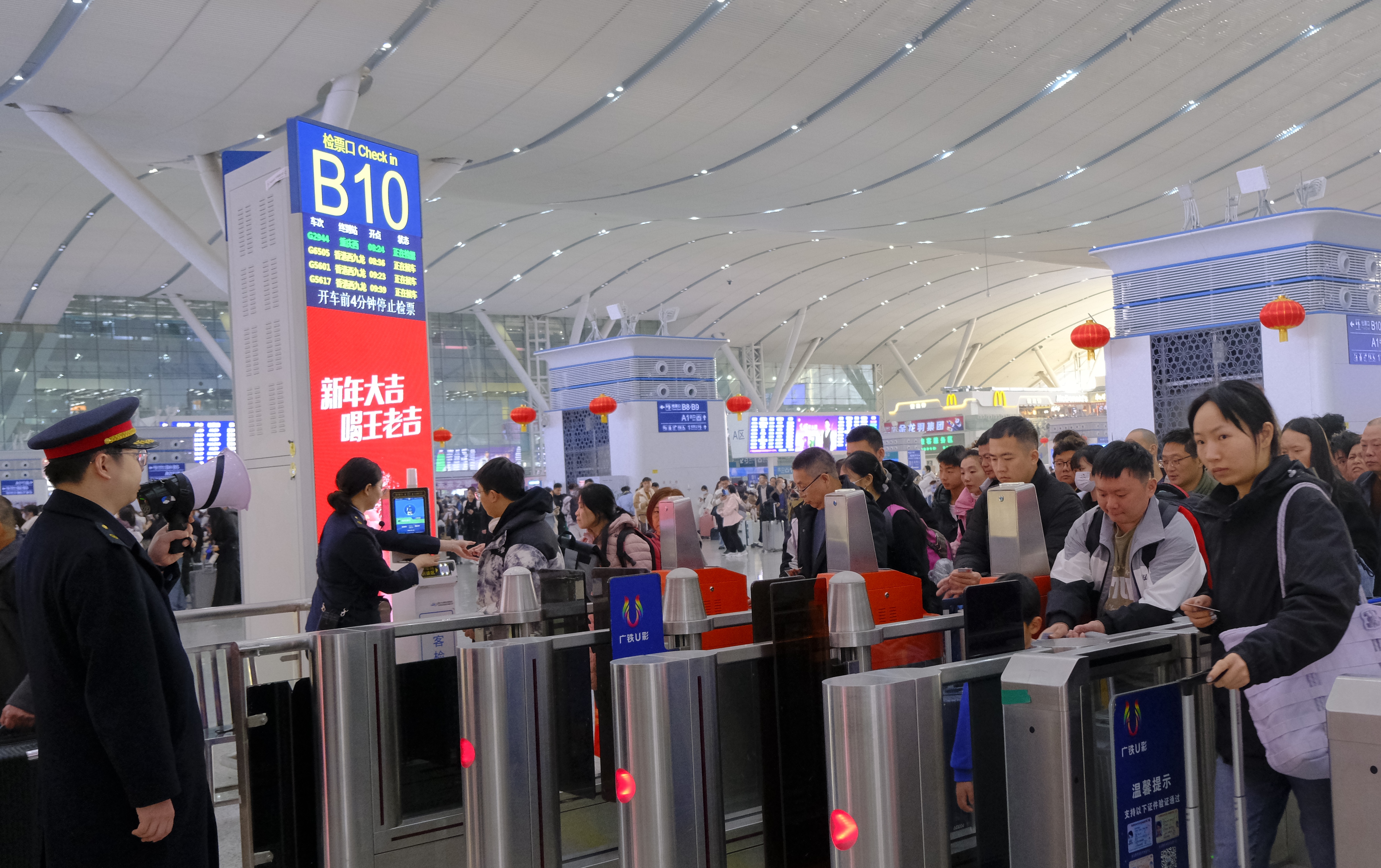 為確保務工人員順暢出行,深圳各大火車站加強站台、候車室檢票口等關鍵區域的引導工作,通過工作人員現場宣傳指引、增設指示牌、廣播提示等方式,確保旅客能夠有序乘降。深圳北站開設「急客」通道,確保緊急情況下快速進站。同時,在候車大廳內設置了飲水處,提供24小時免費的熱水和充電服務;深圳站將原有的一個獨立檢票區優化為5個檢票口,不僅大幅擴充了候車室面積,還縮短了旅客行走距離;深圳東站為滿足高峰時段旅客候車,緩解候車壓力,對高架二層候車室進行擴容,為旅客創造更寬敞、更舒適的候車環境。