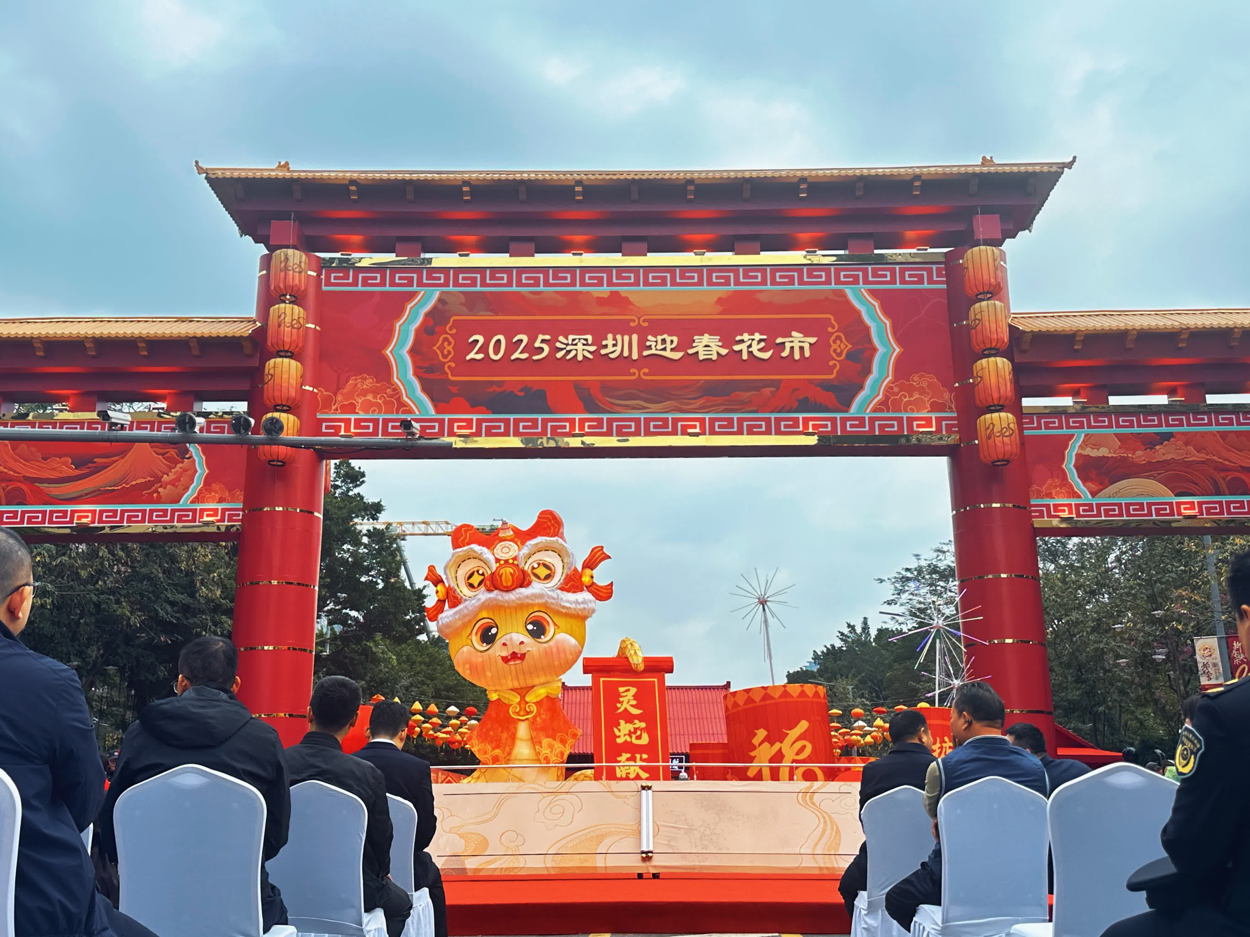 羅湖花市今年的主題為「蛇來運轉,春滿羅湖」。22日上午10點,記者走進羅湖區愛國路花市,首先映入眼帘的是一座寬達31.8米、高13.65米的牌坊,這是精心復刻的2015年花市經典傳統門樓,結合靈蛇傳統文化IP,瞬間將人帶入了濃濃的年味之中。