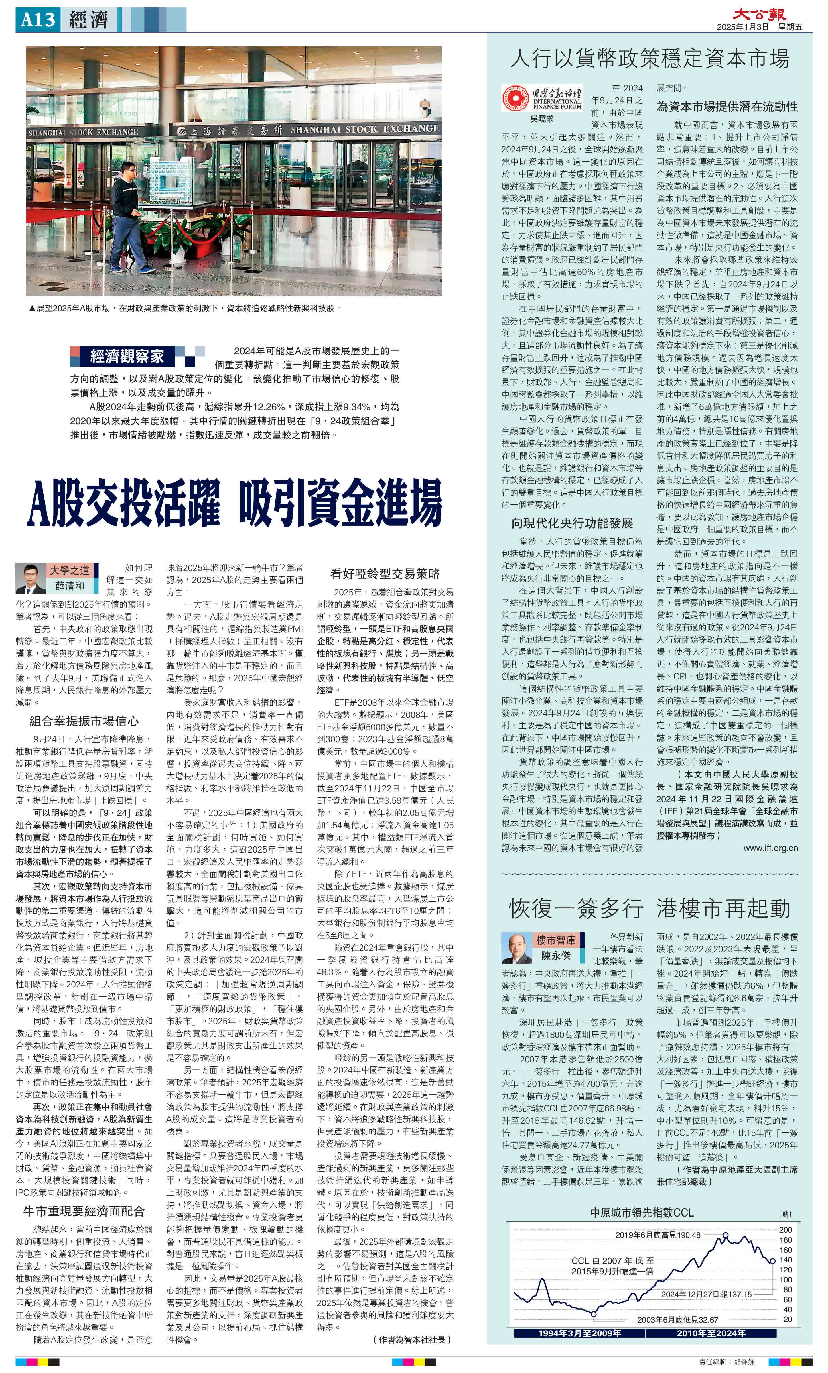 然而,資本市場的目標是止跌回升,這和房地產的政策指向是不一樣的。中國的資本市場有其底線,人行創設了基於資本市場的結構性貨幣政策工具,最重要的包括互換便利和人行的再貸款,這是在中國人行貨幣政策歷史上從來沒有過的政策。從2024年9月24日人行就開始採取有效的工具影響資本市場,使得人行的功能開始向美聯儲靠近,不僅關心實體經濟、就業、經濟增長、CPI,也關心資產價格的變化,以維持中國金融體系的穩定。中國金融體系的穩定主要由兩部分組成,一是存款的金融機構的穩定,二是資本市場的穩定,這構成了中國雙重穩定的一個標誌。未來這些政策的趨向不會改變,且會根據形勢的變化不斷實施一系列新措施來穩定中國經濟。