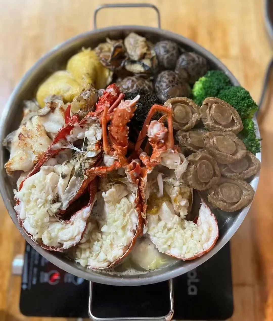 盆菜的製作方法也很講究,各種食材要先分開烹煮入味,再按次序一層層鋪進鍋裏,最後加入濃郁的醬汁慢煮後上桌,用小熱爐一邊煮一邊吃。