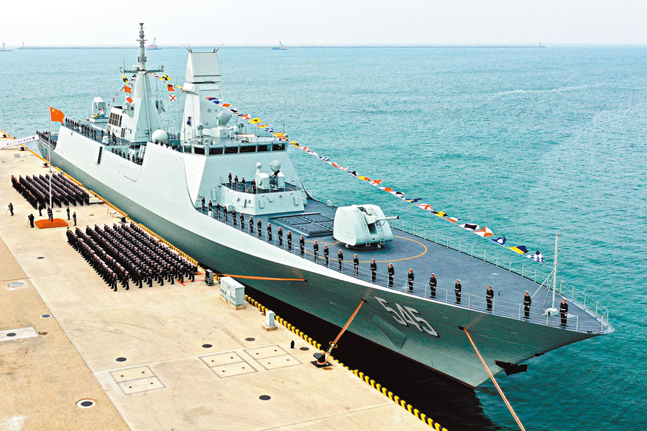 (香港文匯報 記者 宋偉、馬靜)中國人民解放軍海軍054B護衛艦首艦「漯河艦」22日上午在青島某軍港交接入列。據「人民海軍」微信公眾號消息,漯河艦舷號為545,排水量約5,000噸,是中國自主研製建造的新一代護衛艦,在艦艇隱身技術、作戰指揮系統、火力集成控制等方面取得突破,各項性能顯著增強,具備較強的綜合作戰和遂行多樣化軍事任務能力,對提升中國海軍艦艇編隊整體作戰效能具有重要意義。054B護衛艦排水量噸位增加、雷達系統也有較大提升改造,從武器配置看,054B在遠洋編隊中所承擔的核心任務是中程防空與反潛,並可兼顧遠程反艦打擊。