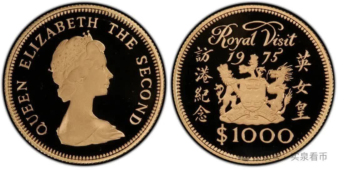 1975年5月初,英國女王訪港,港英政府發行紀念英女皇訪港紀念金幣,由英國倫敦皇家造幣廠鑄造。該紀念金幣完全按照英國2英鎊索維林金幣的規格標準鑄造,直徑28.4毫米,重量15.976克,成色22K,面值1000元。此後香港所鑄之紀念金幣,均遵循此標準。