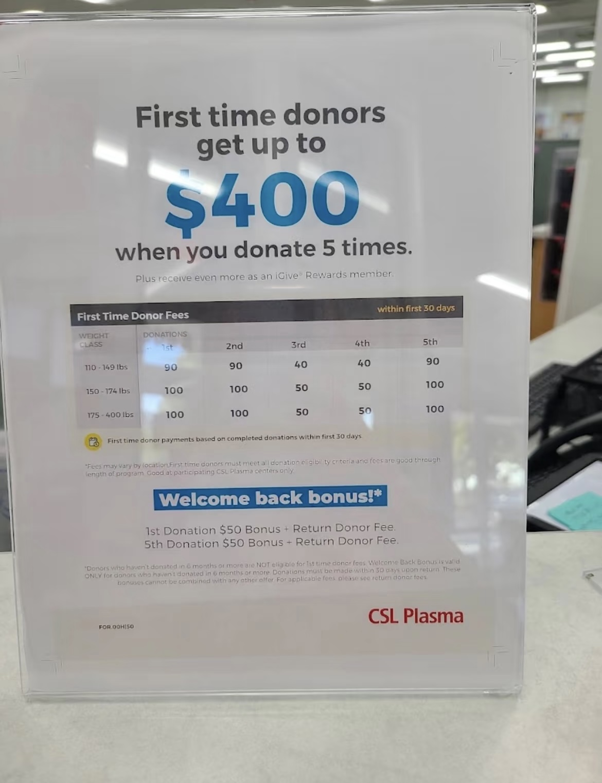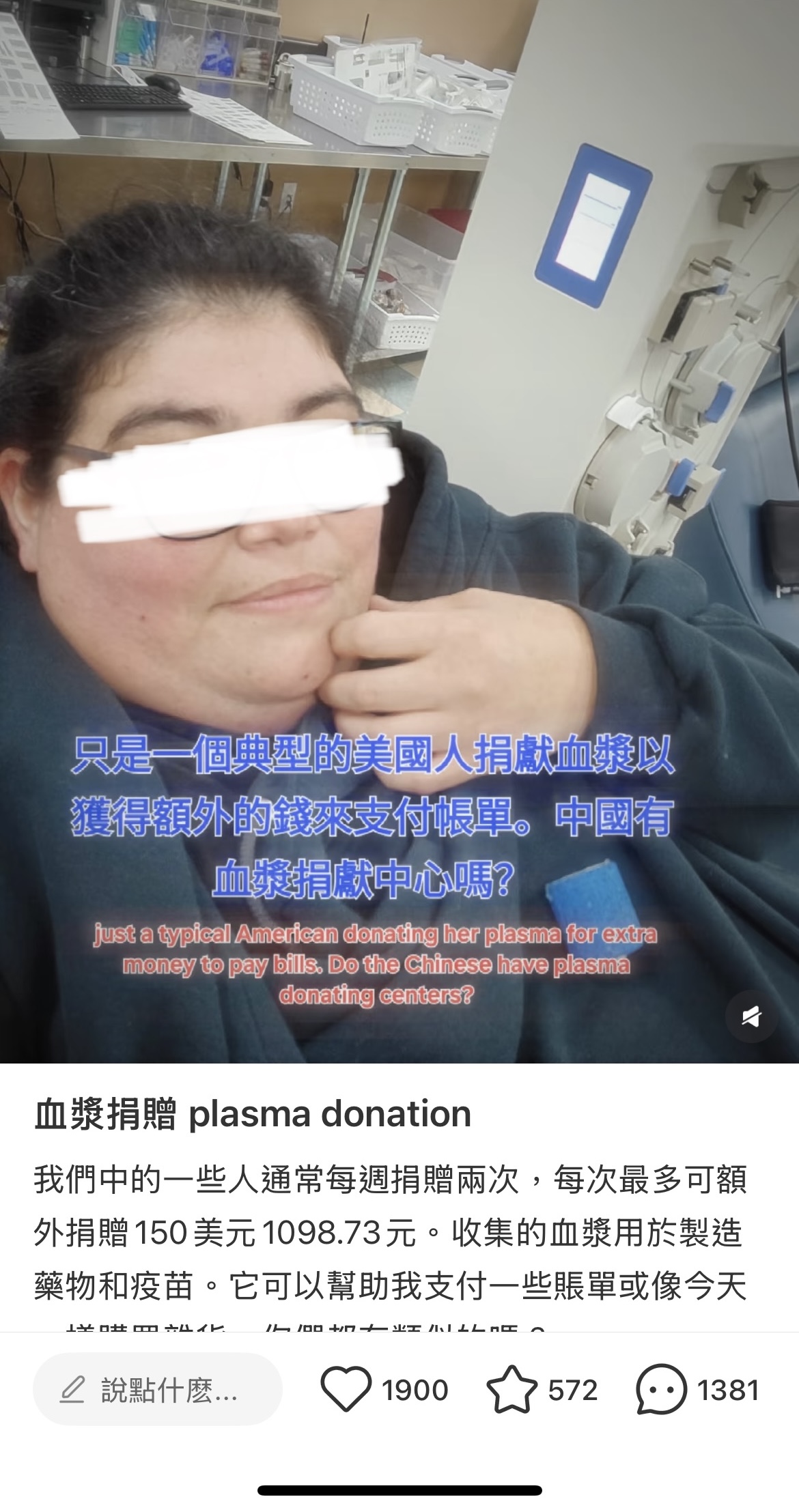 美國網友證實「捐獻」血漿獲得報酬屬實